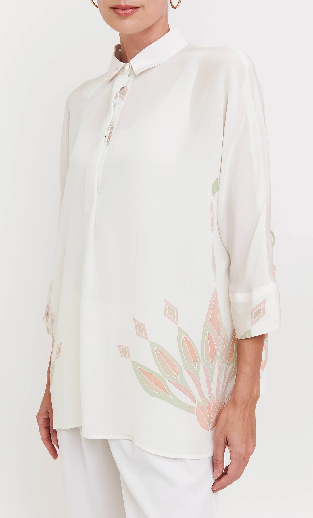 Women's White Roman Silk Blend Printed Top - BlackBeads