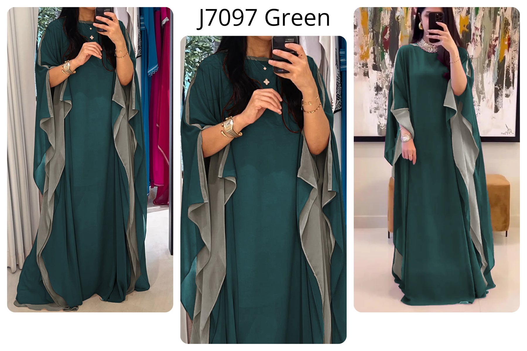 Women's Green 2 Layer Georgette Chiffon Drapped Sleeves Kaftan