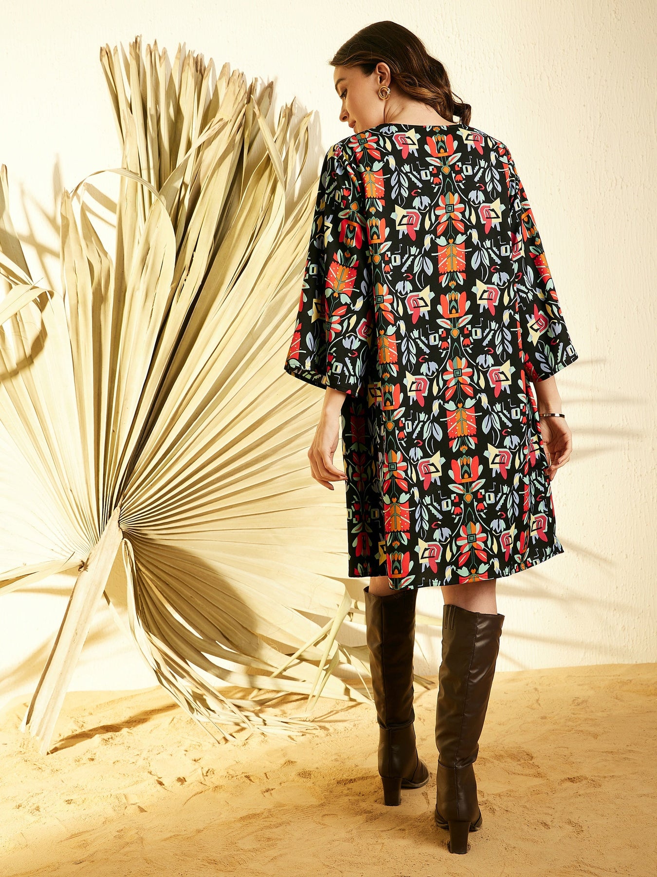Women's Black & Multi Color Polyester Floral Co-Ord Set - Stylestone