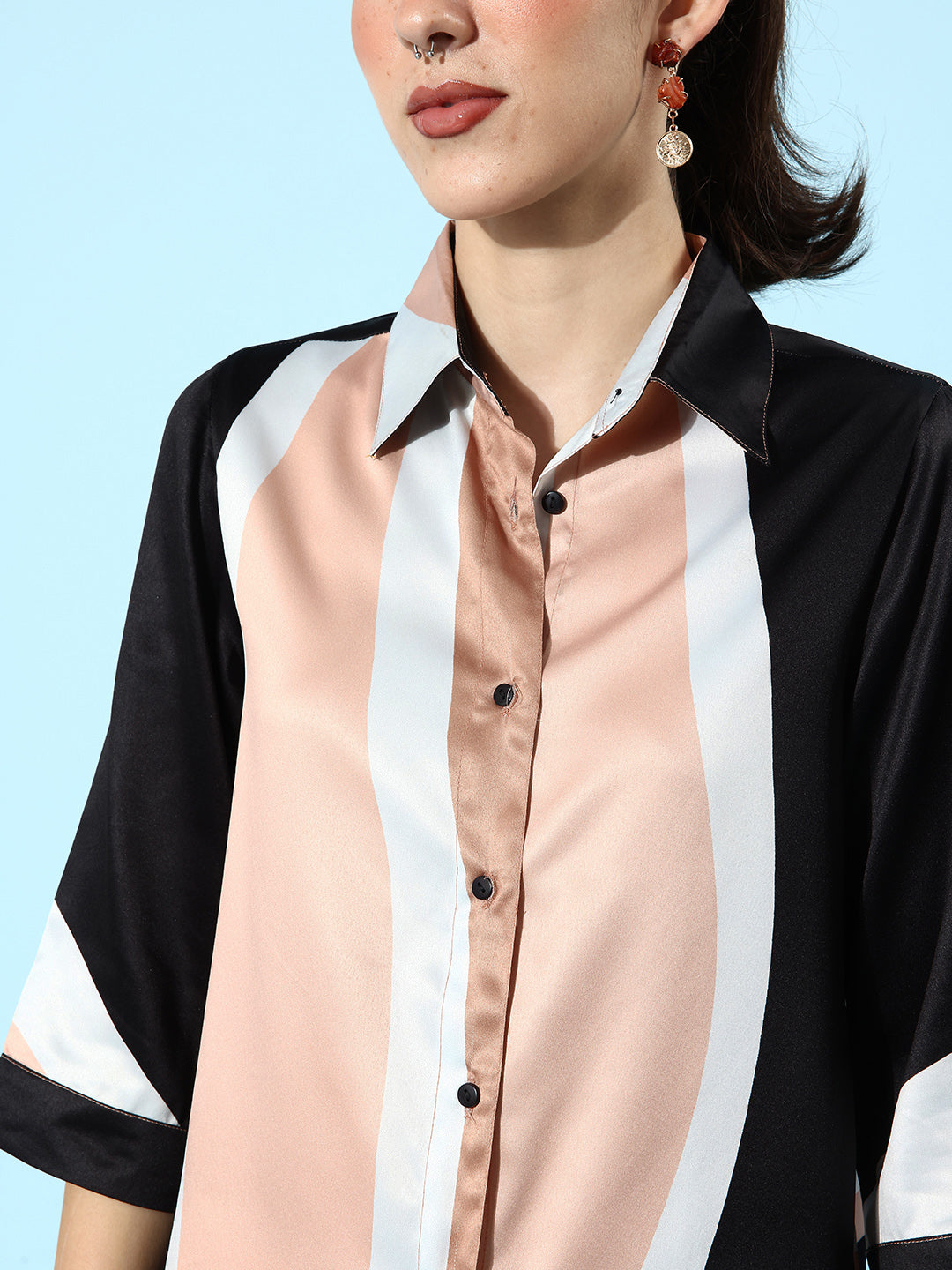 Women's Black & Beige Satin Shirt and Trousers Co-ord Set - StyleStone