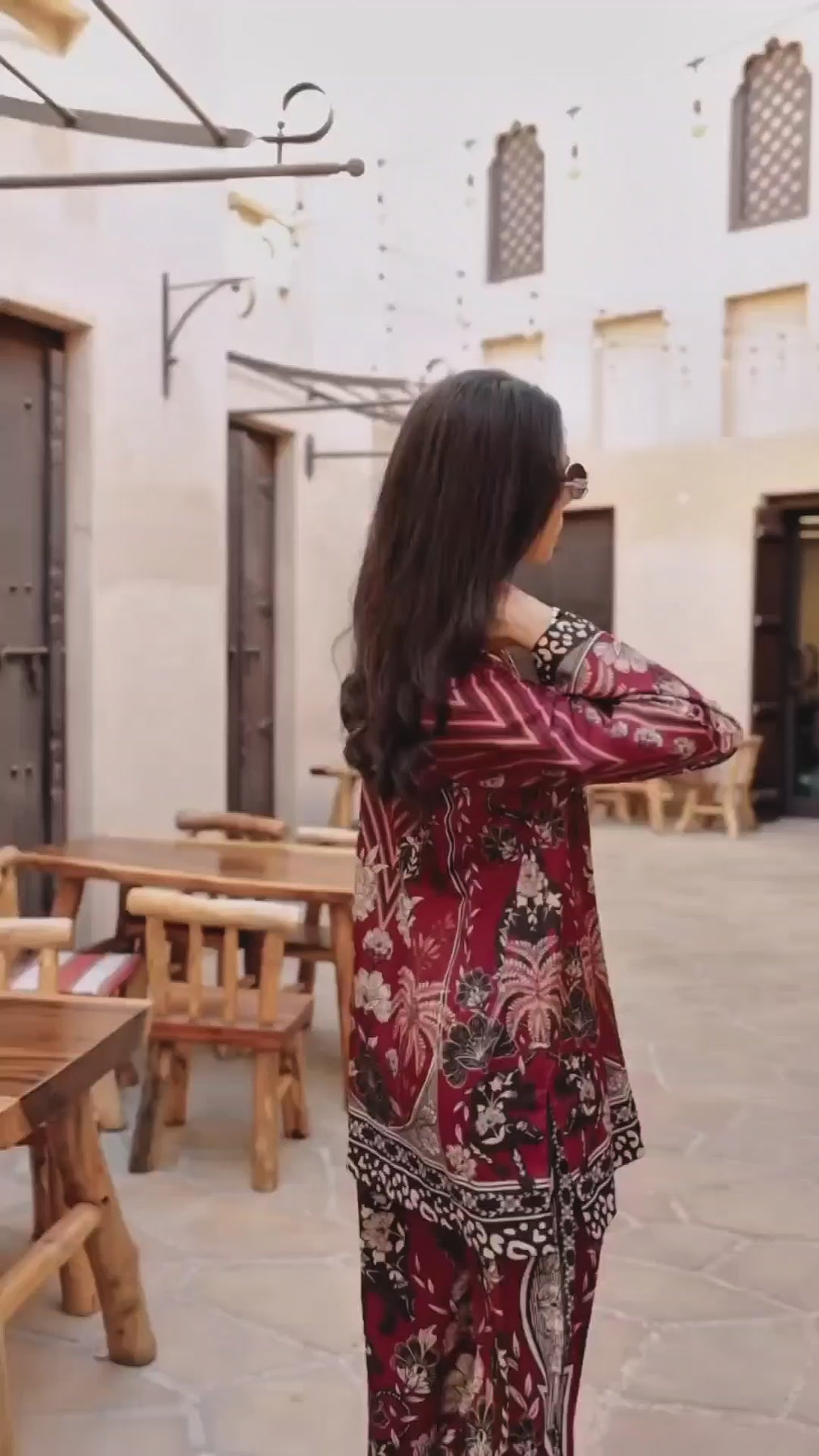 Women's Maroon Median Silk Crepe Printed Co-Ord Sets