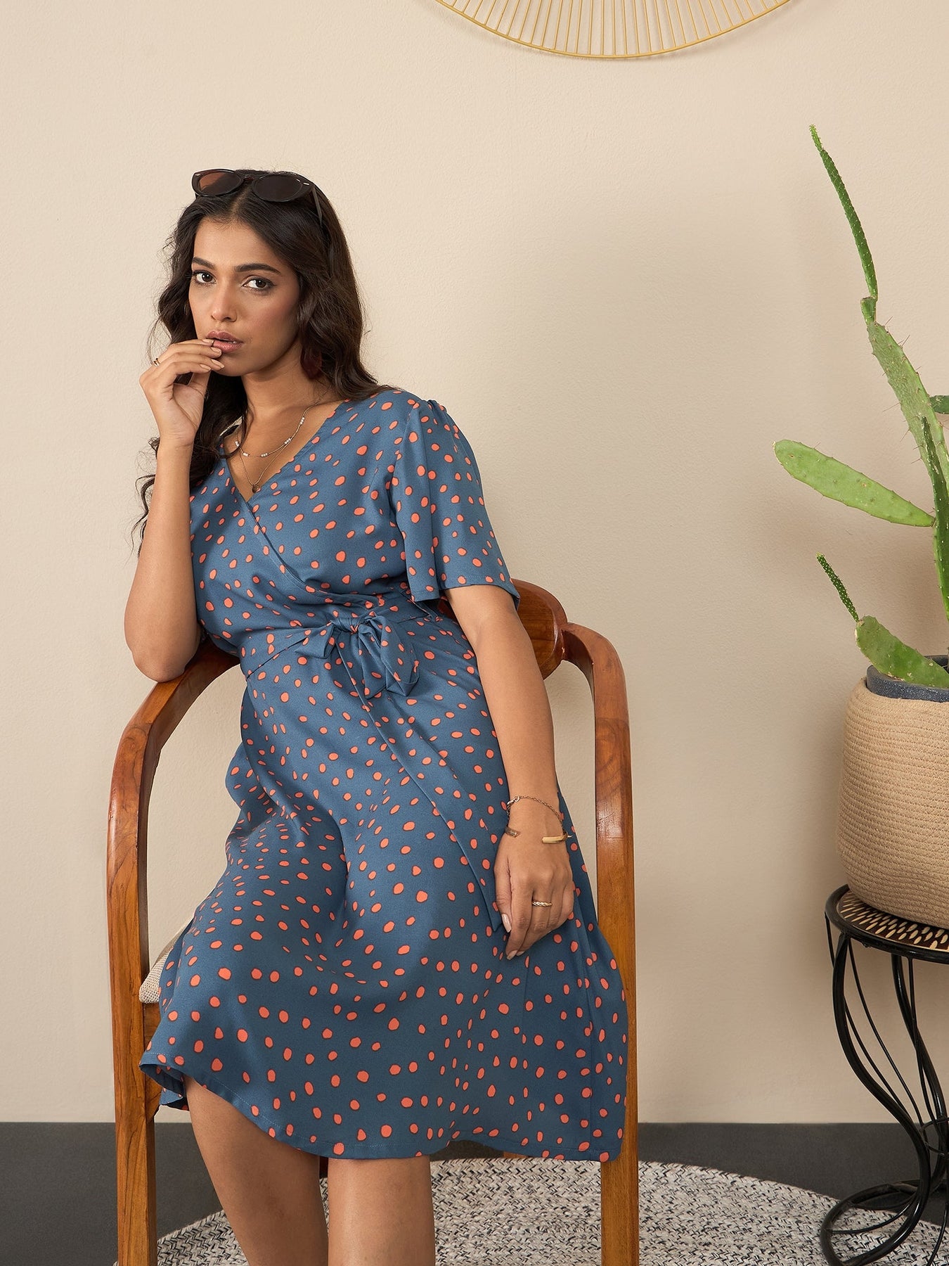 Women's Grey Polyester Moss Polka Dress - Stylestone