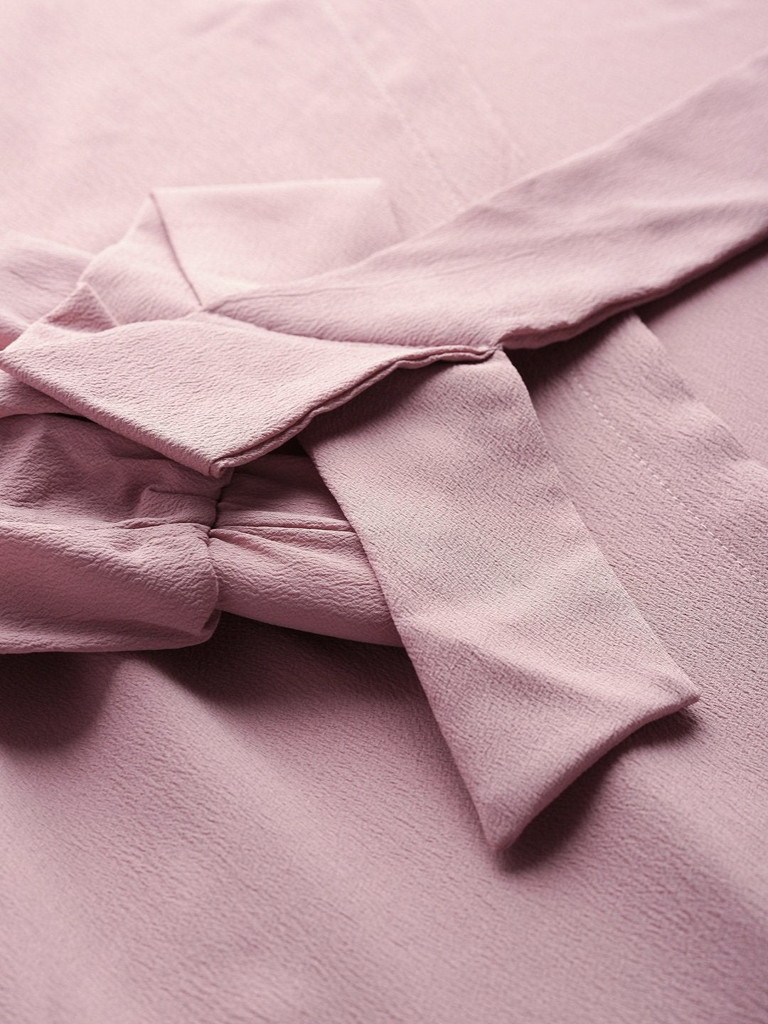 Baked Pink Solid Front Open Shrug, in Polyester fabric, Unlined, Full Length, Comfort Fit, No Closure, Straight Hemline and features Knotted Sleeves