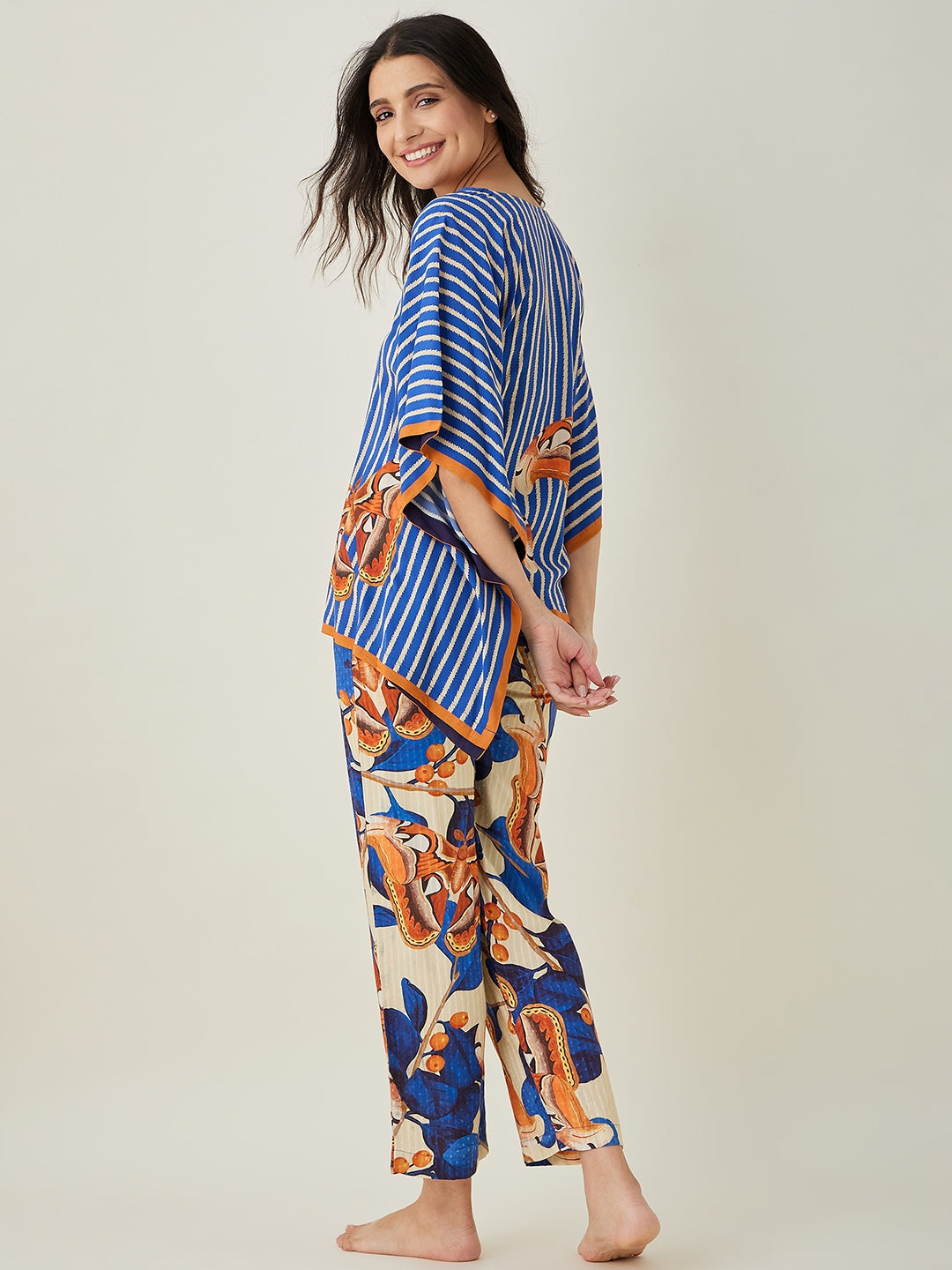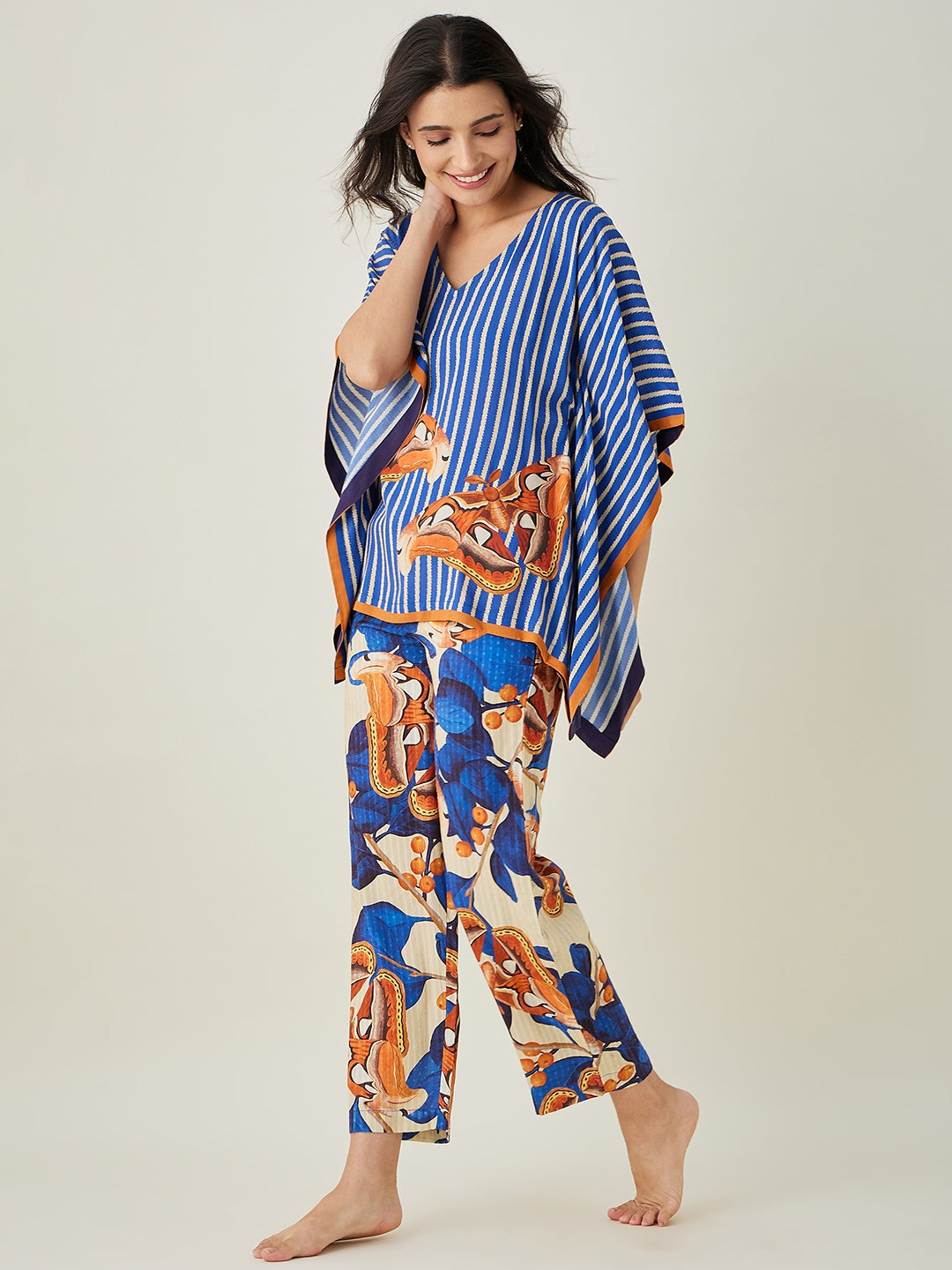 Blue Fluttery Dream Pajama set with Kaftan Top and slip on Elasticated Pajama