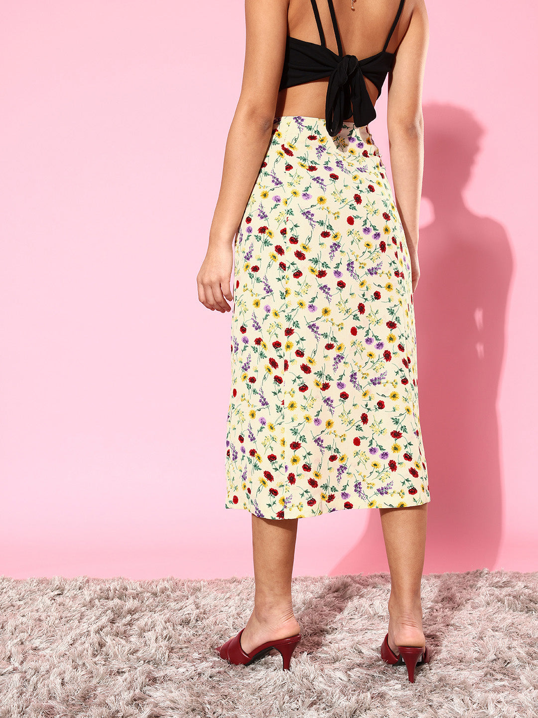 Women's Floral Slit Midi Skirt- Multi - StyleStone Color :Multi Fabric :Polyester Waist: Side Zip Pattern: Floral Wash Care :Machine Wash