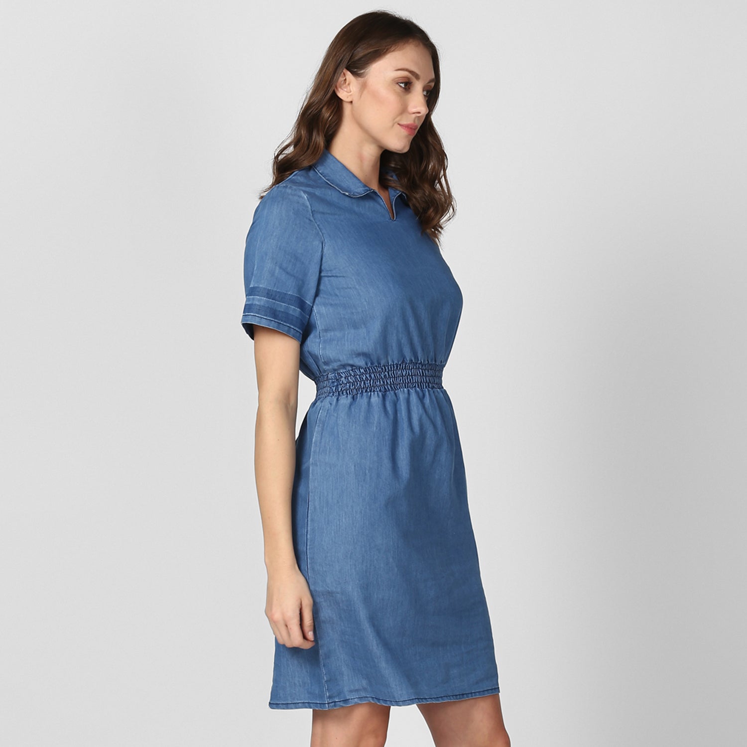 StyleStone Women's Blue Denim Dress with Smocked waistline FABRIC: Denim COLOUR: Blue Wash Care: Machine Wash