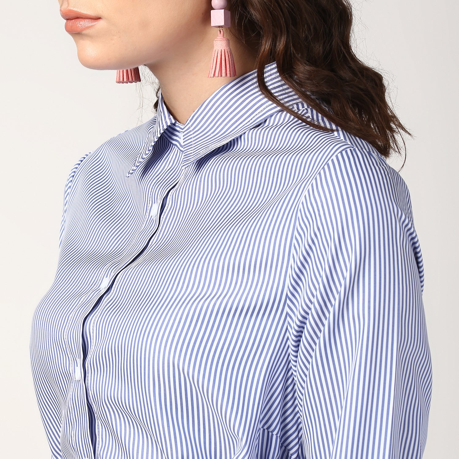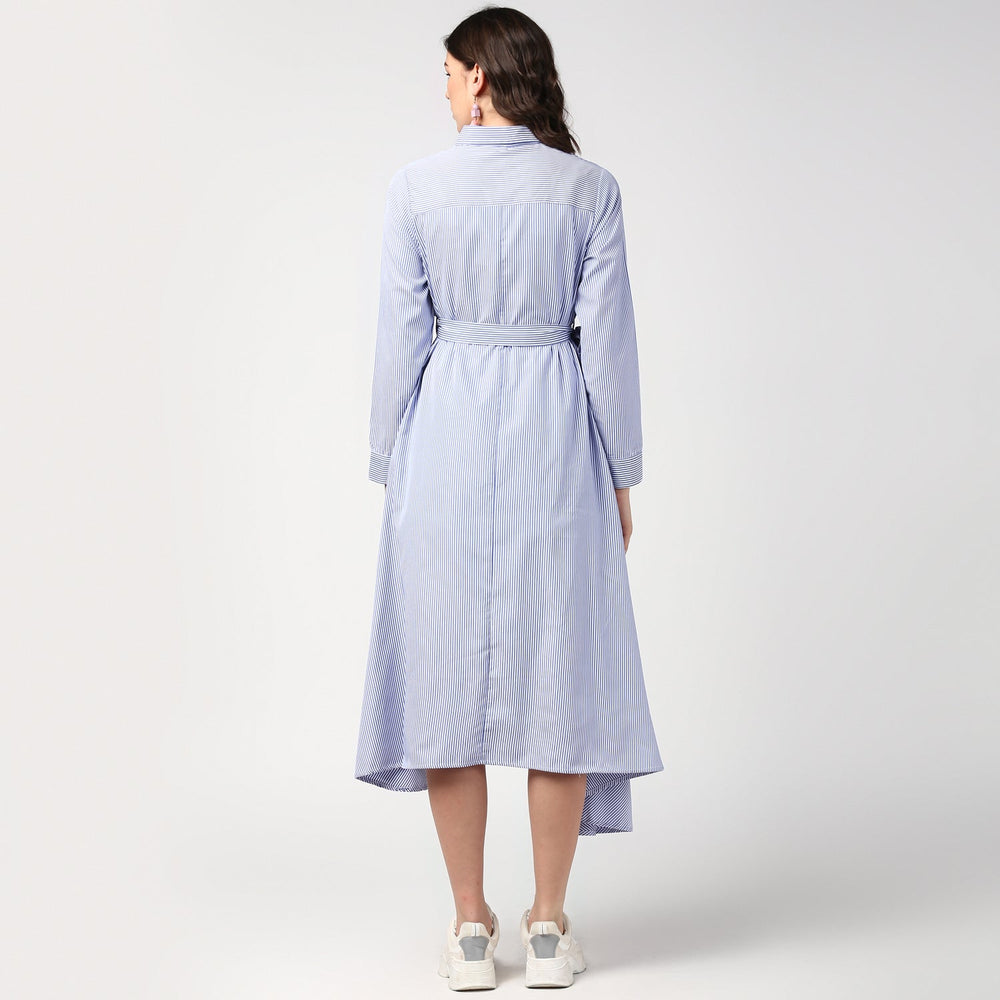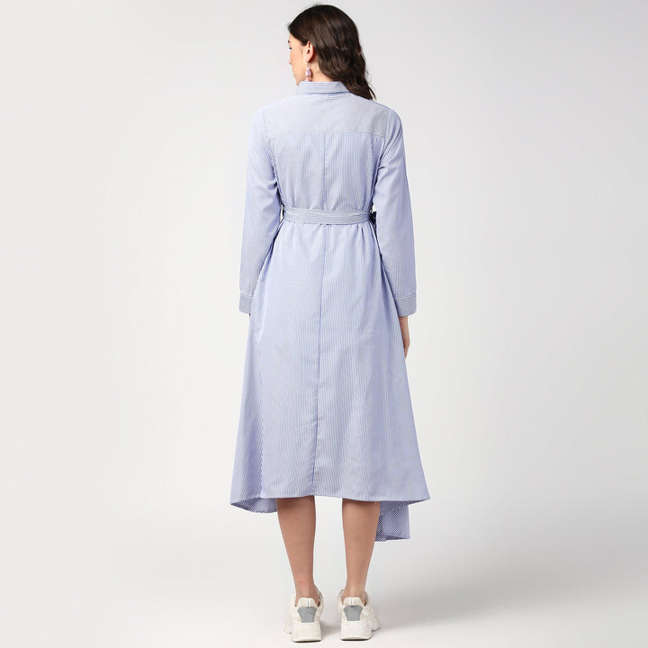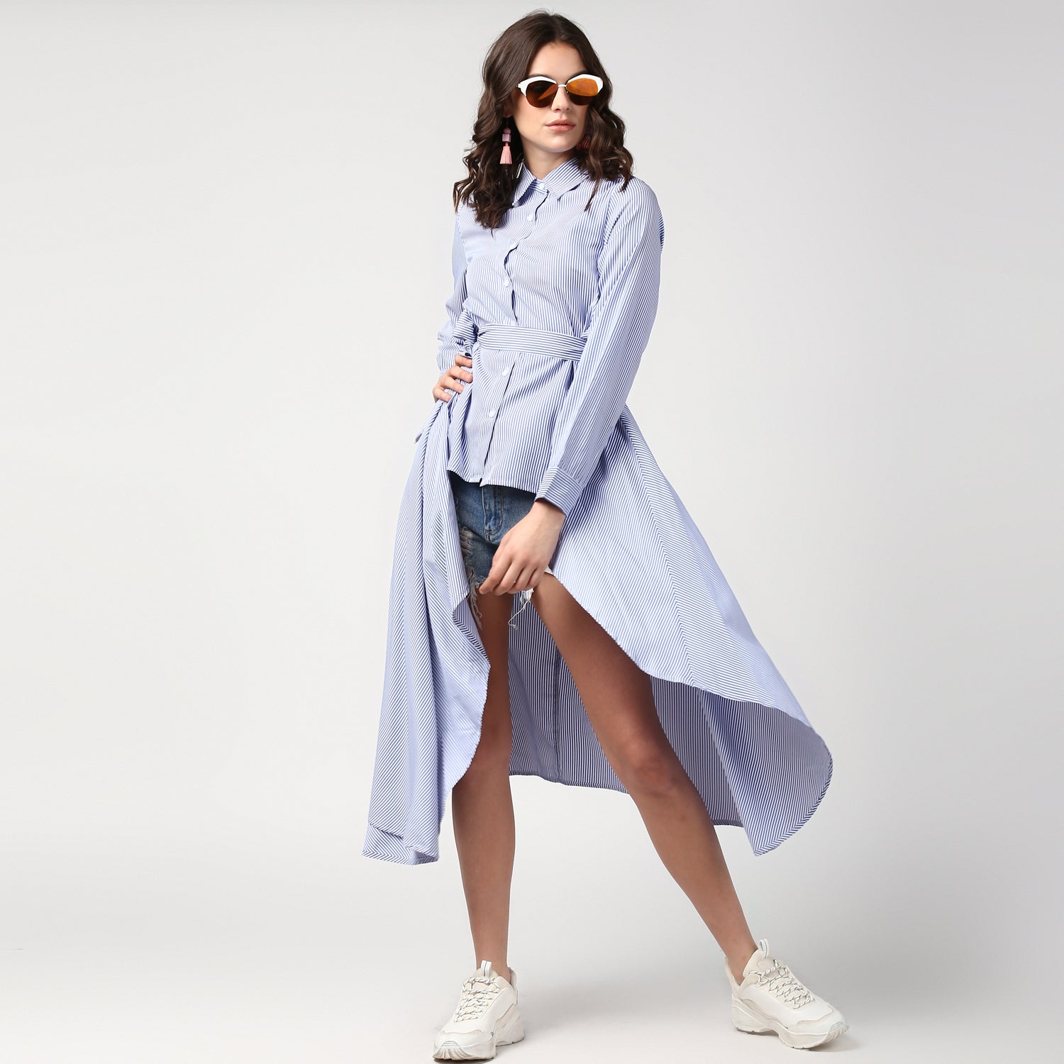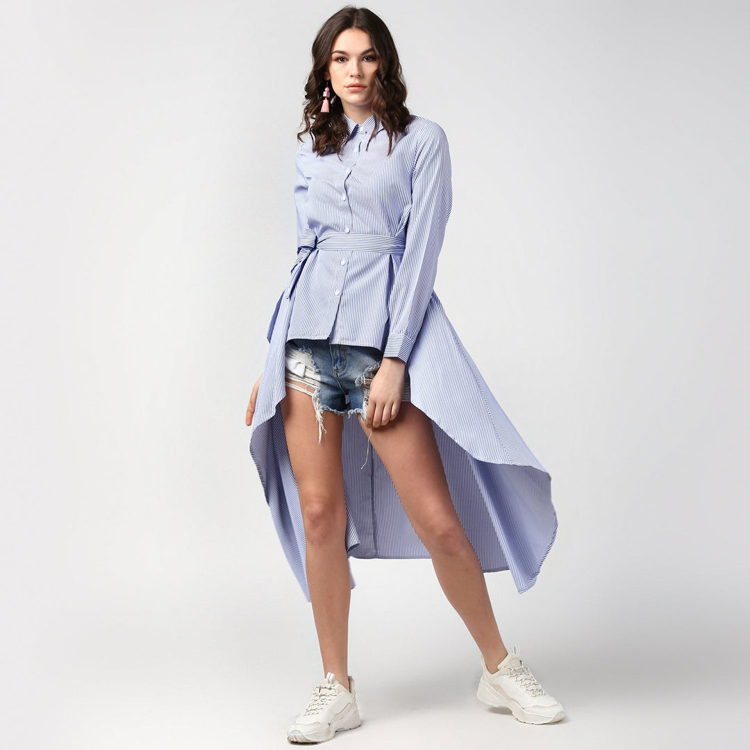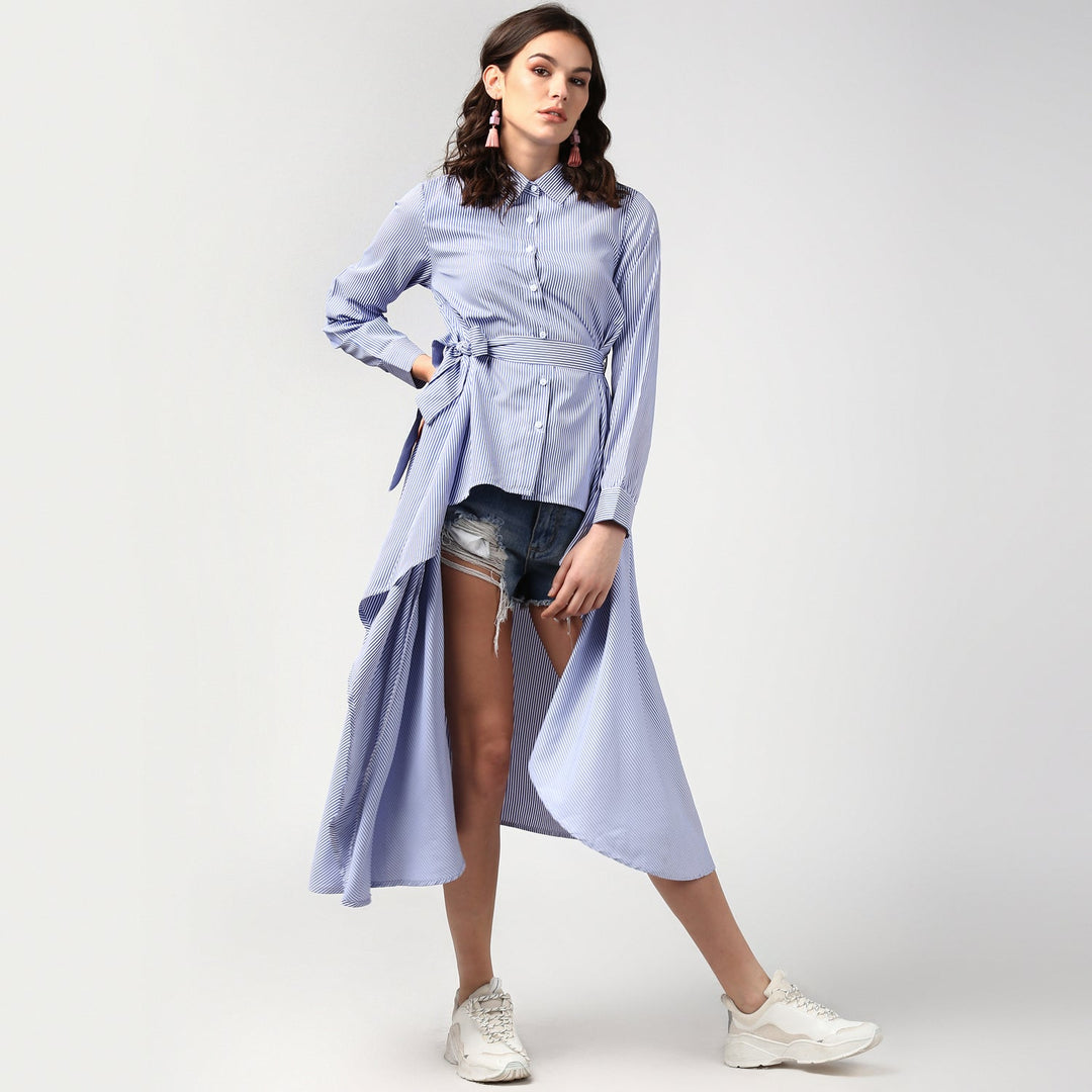 StyleStone Women's Blue Stripe Hi Lo Top FABRIC: Polyester COLOUR: Blue and White Wash Care: Machine Wash