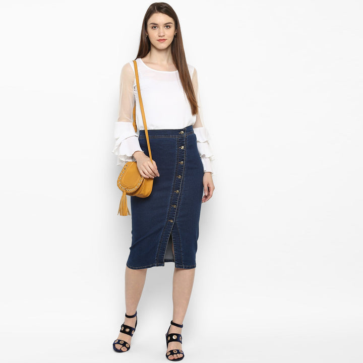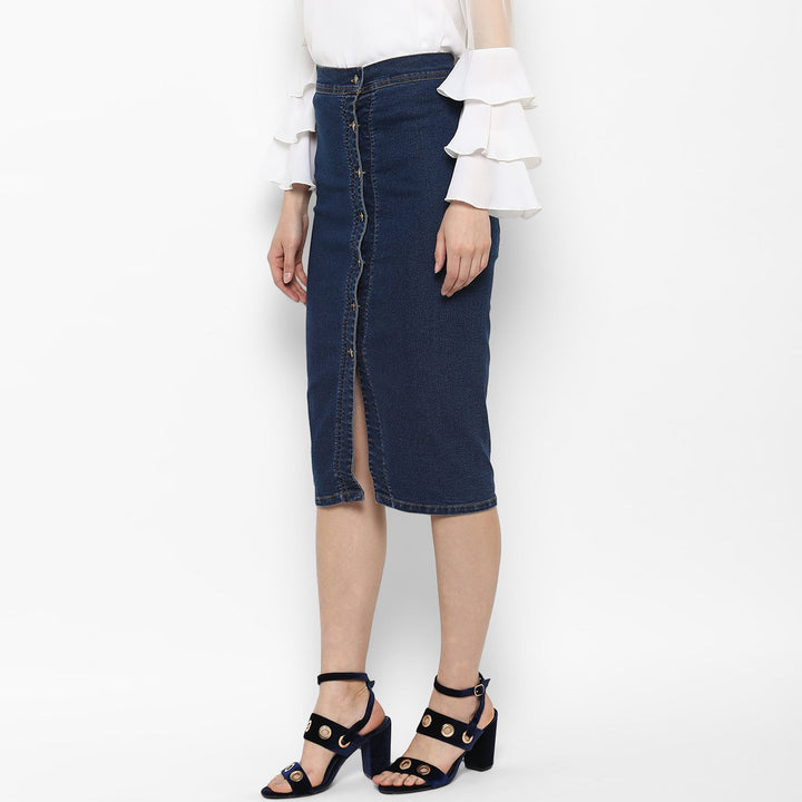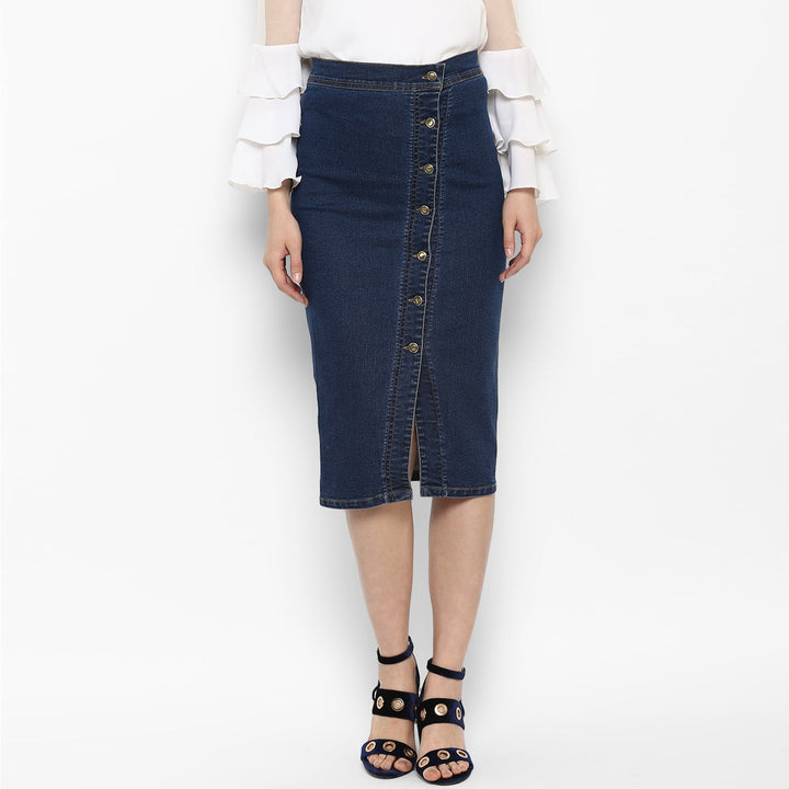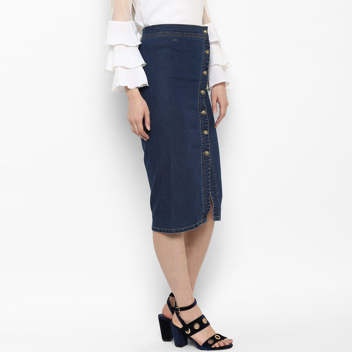 StyleStone Women's Denim Diagonal Button Skirt FABRIC: Denim COLOUR: Blue Wash Care: Machine Wash