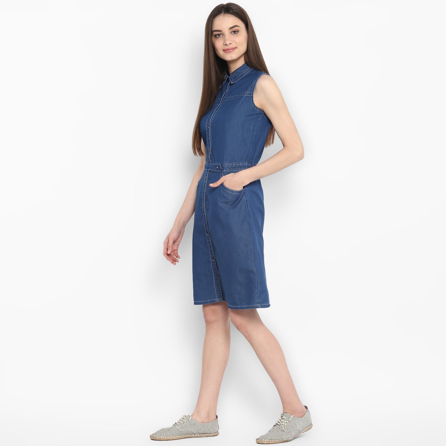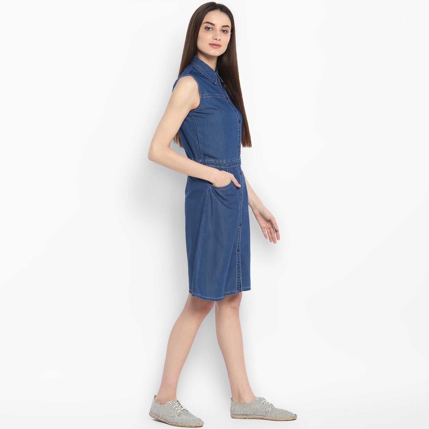 StyleStone Women's Denim Dress with front Button details FABRIC: Denim COLOUR: Blue Wash Care: Machine Wash