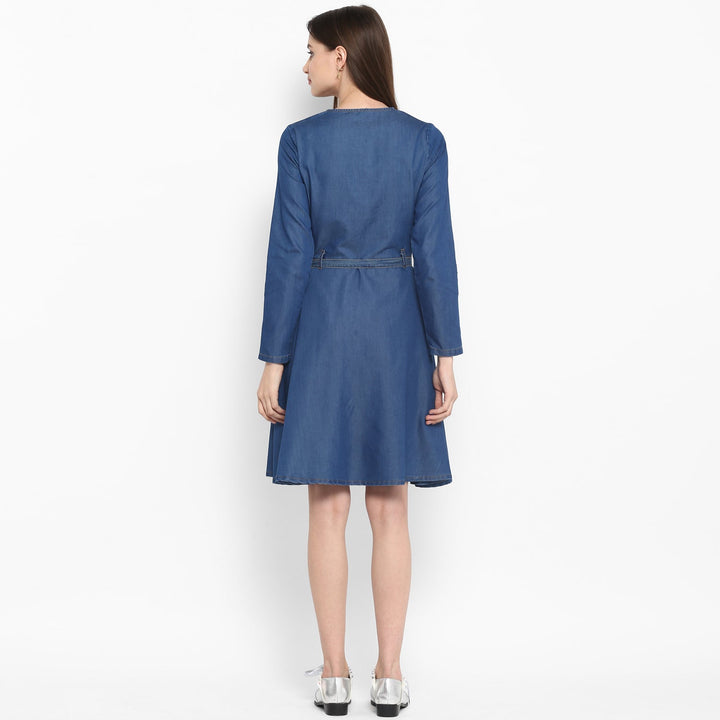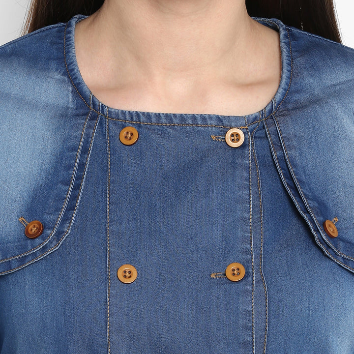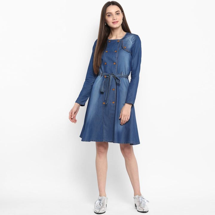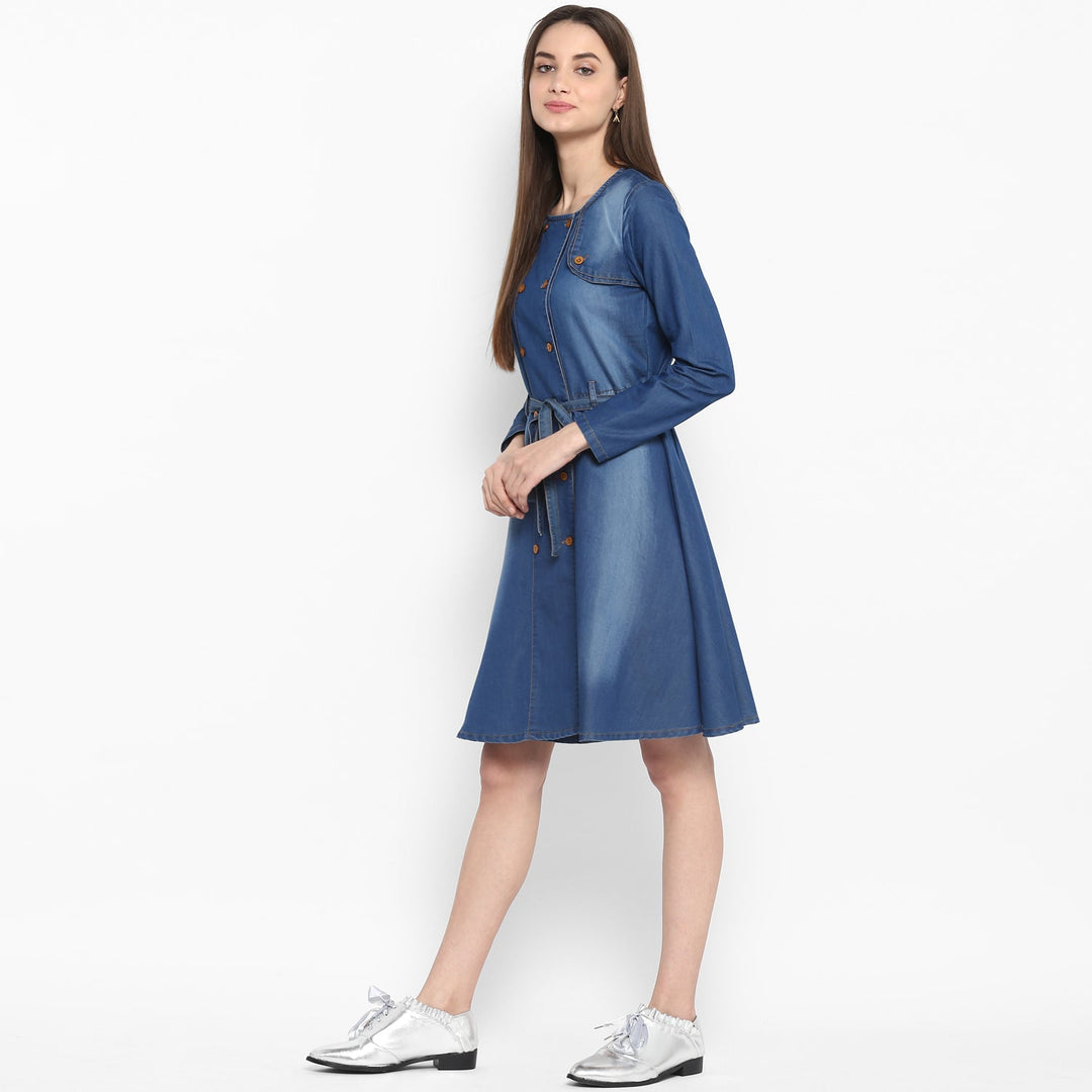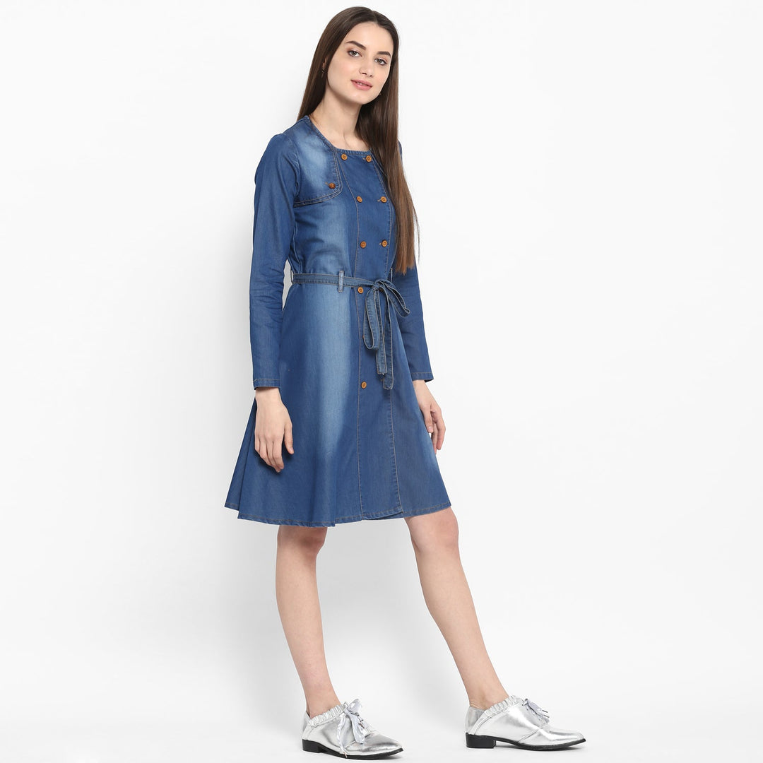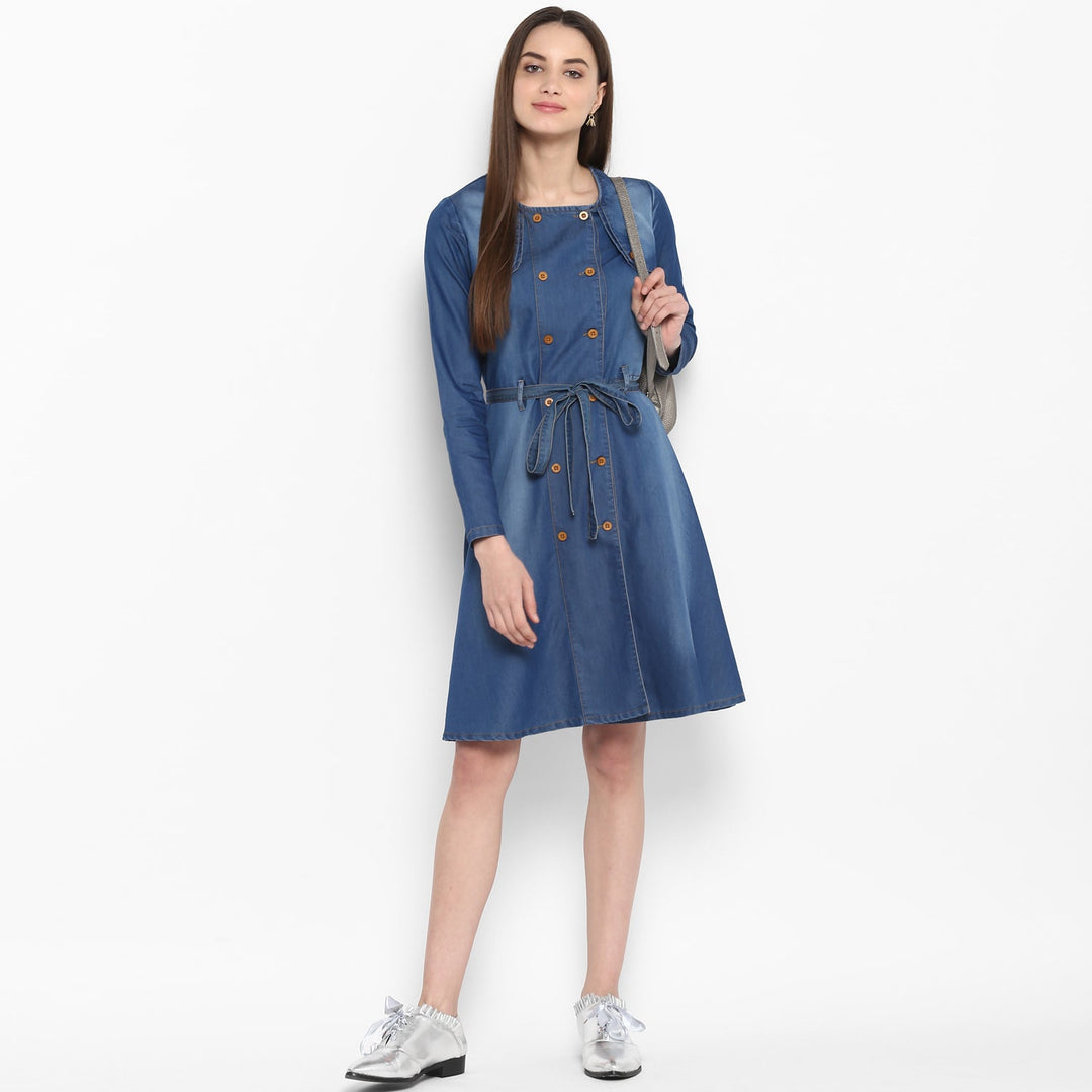 StyleStone Women's Denim Dress with Shoulder Placket detail FABRIC: Denim COLOUR: Blue Wash Care: Machine Wash