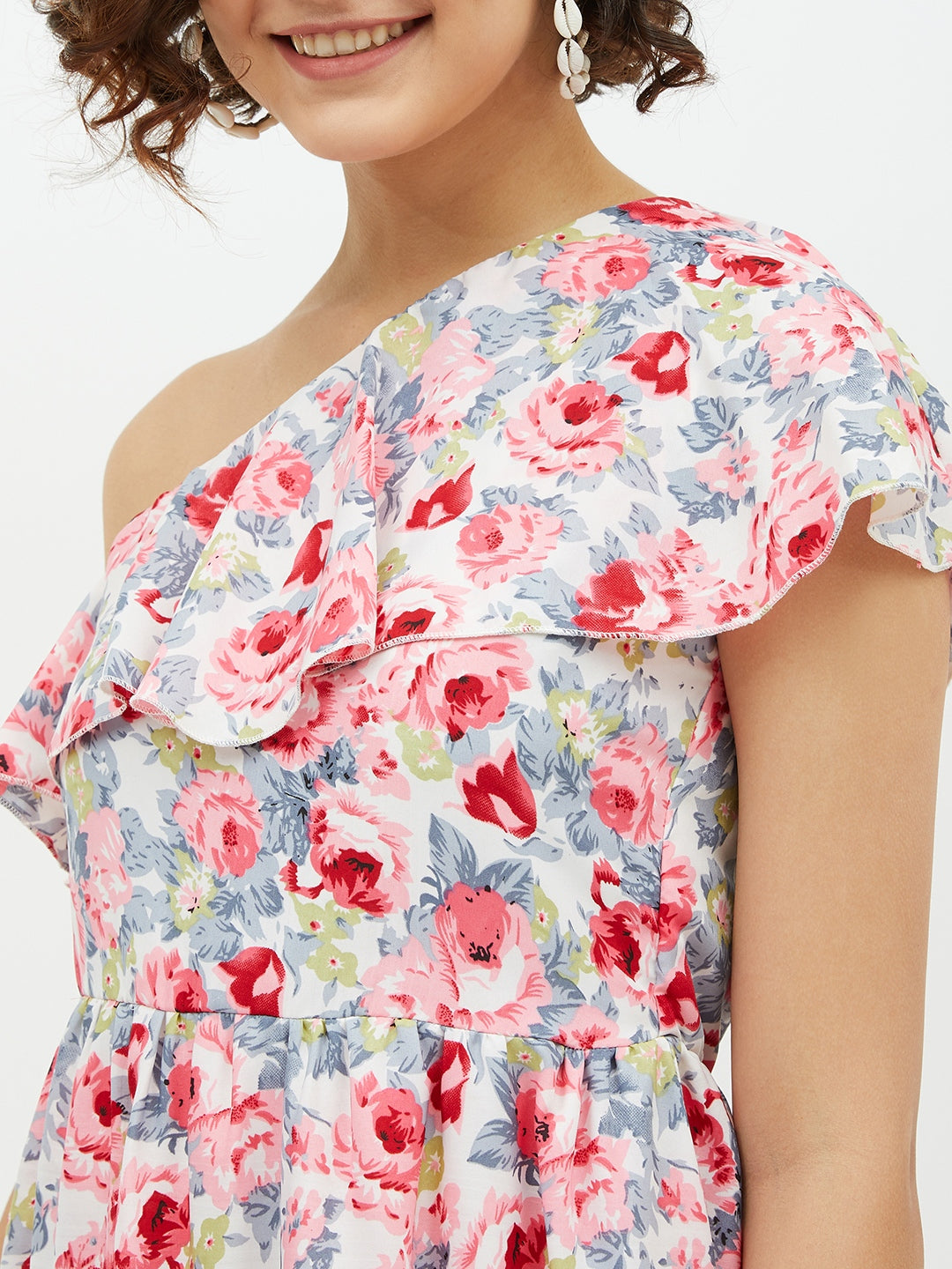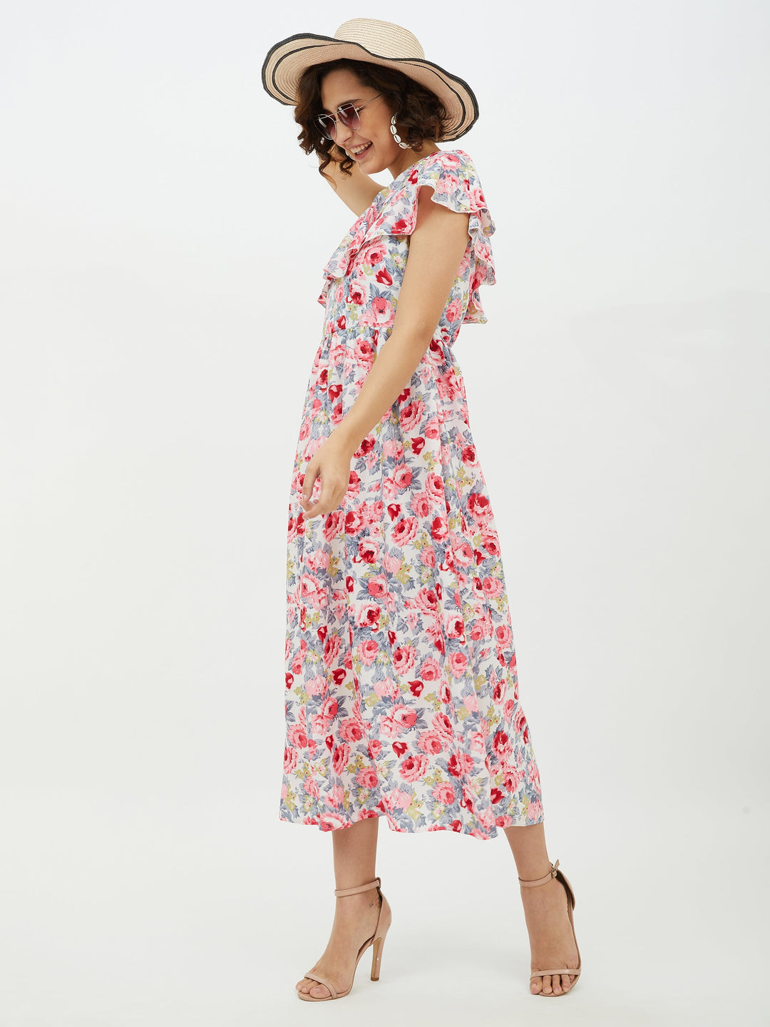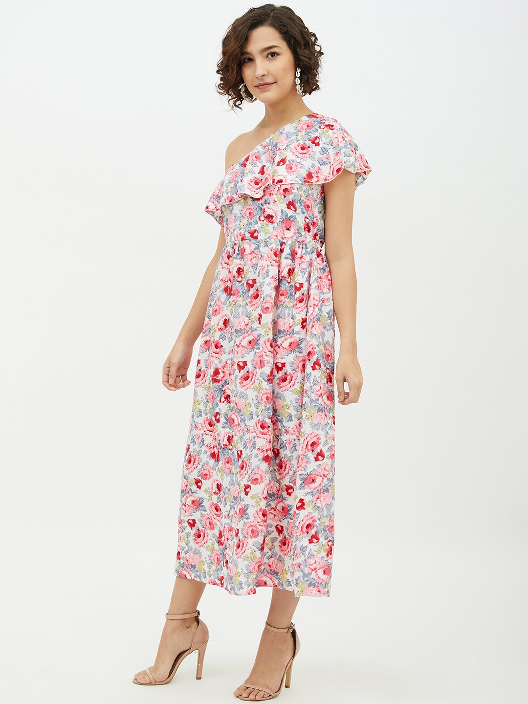 StyleStone Women's Floral One shoulder Polyester Crepe Long dress FABRIC: Polyester COLOUR: Multi Wash Care: Machine Wash