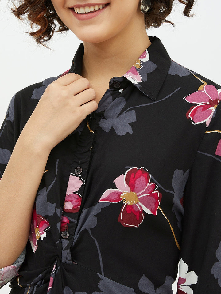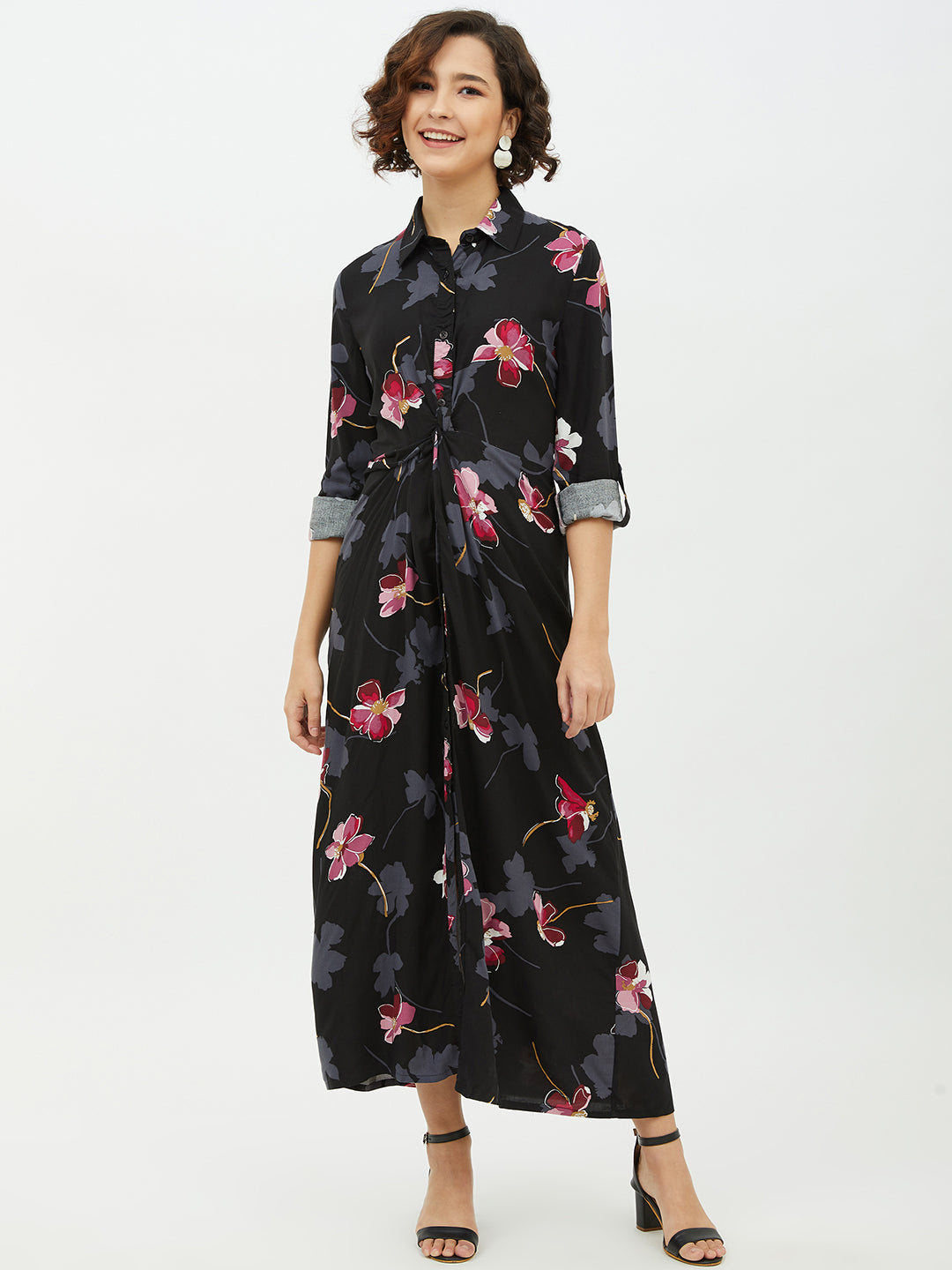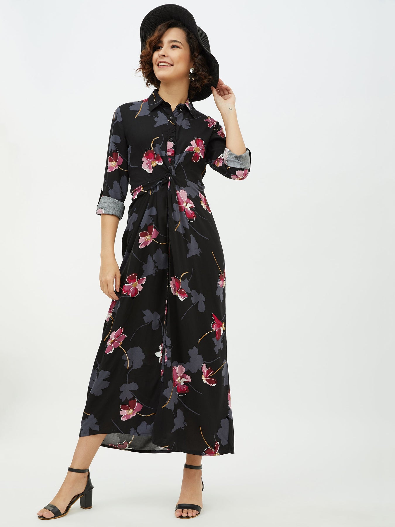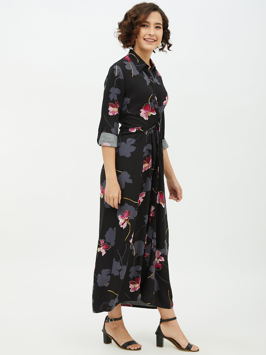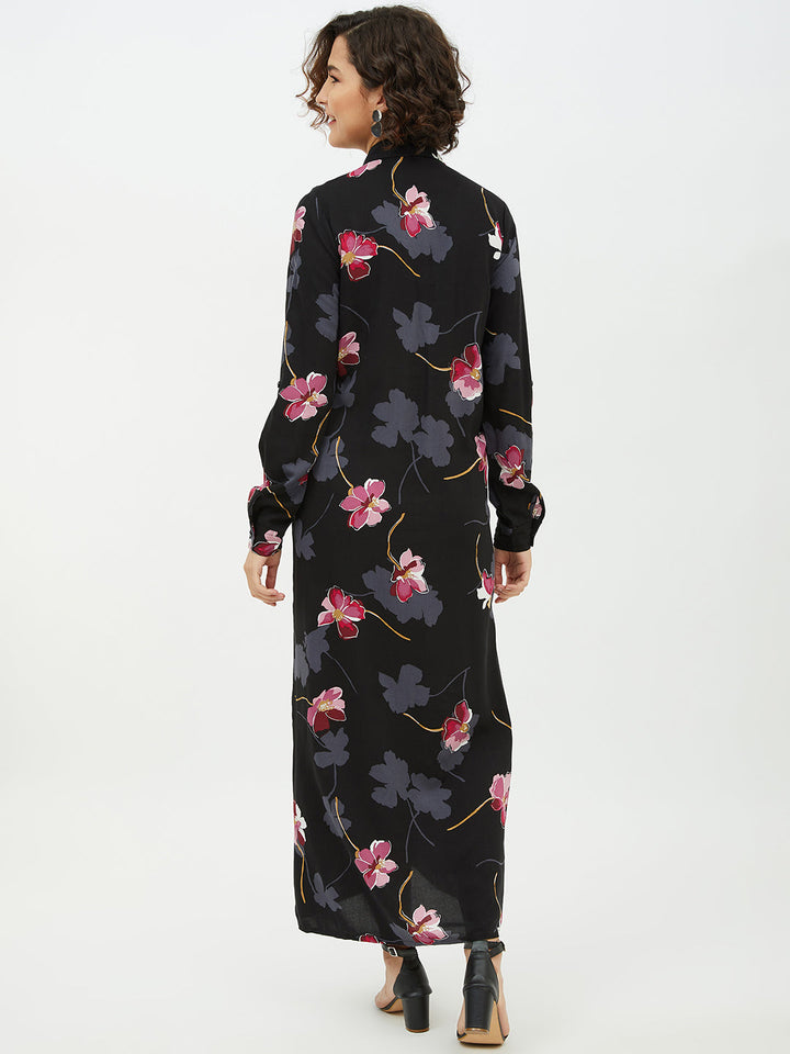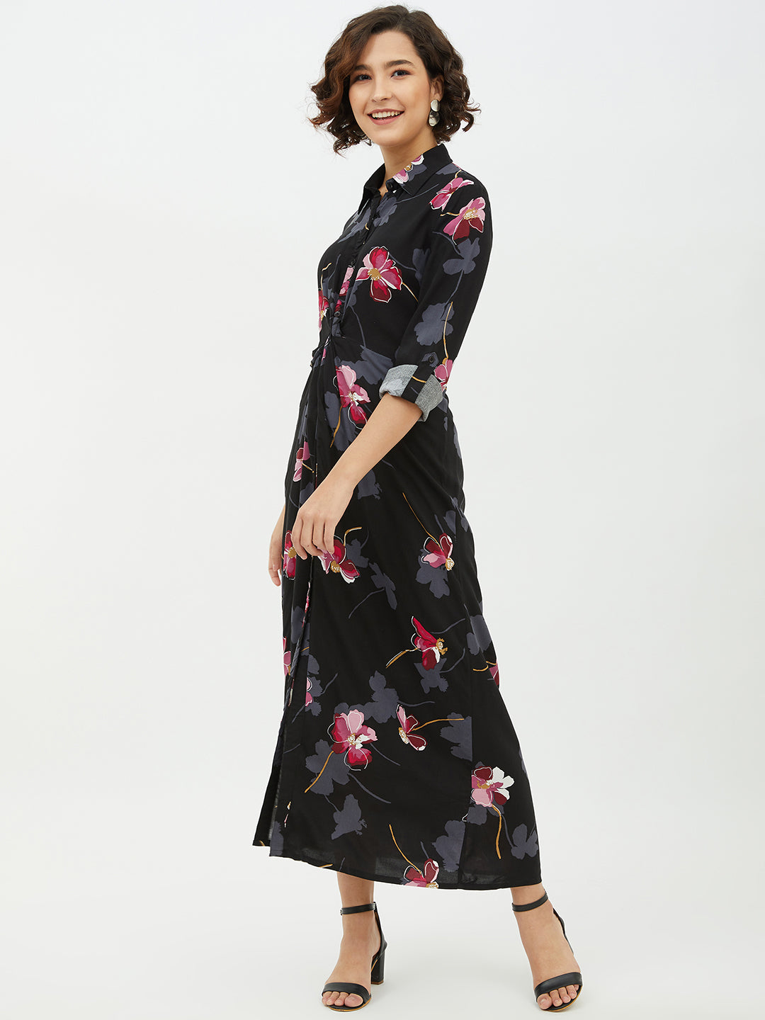StyleStone Women's Floral Print Cotton Long Dress FABRIC: Rayon COLOUR: Black Wash Care: Machine Wash