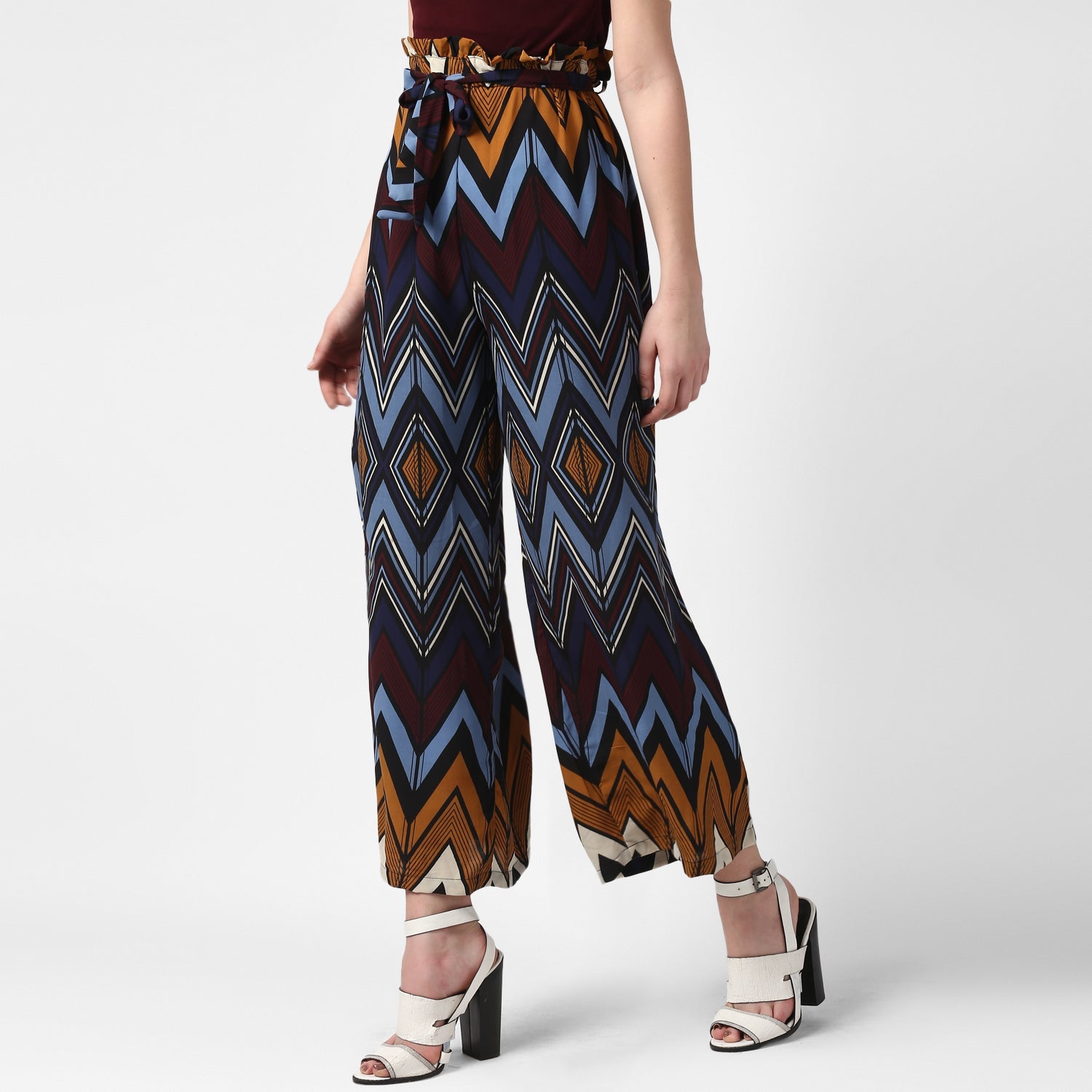 StyleStone Women's MultiColour Chevron Print Paperbag Pants with elasticated waistband