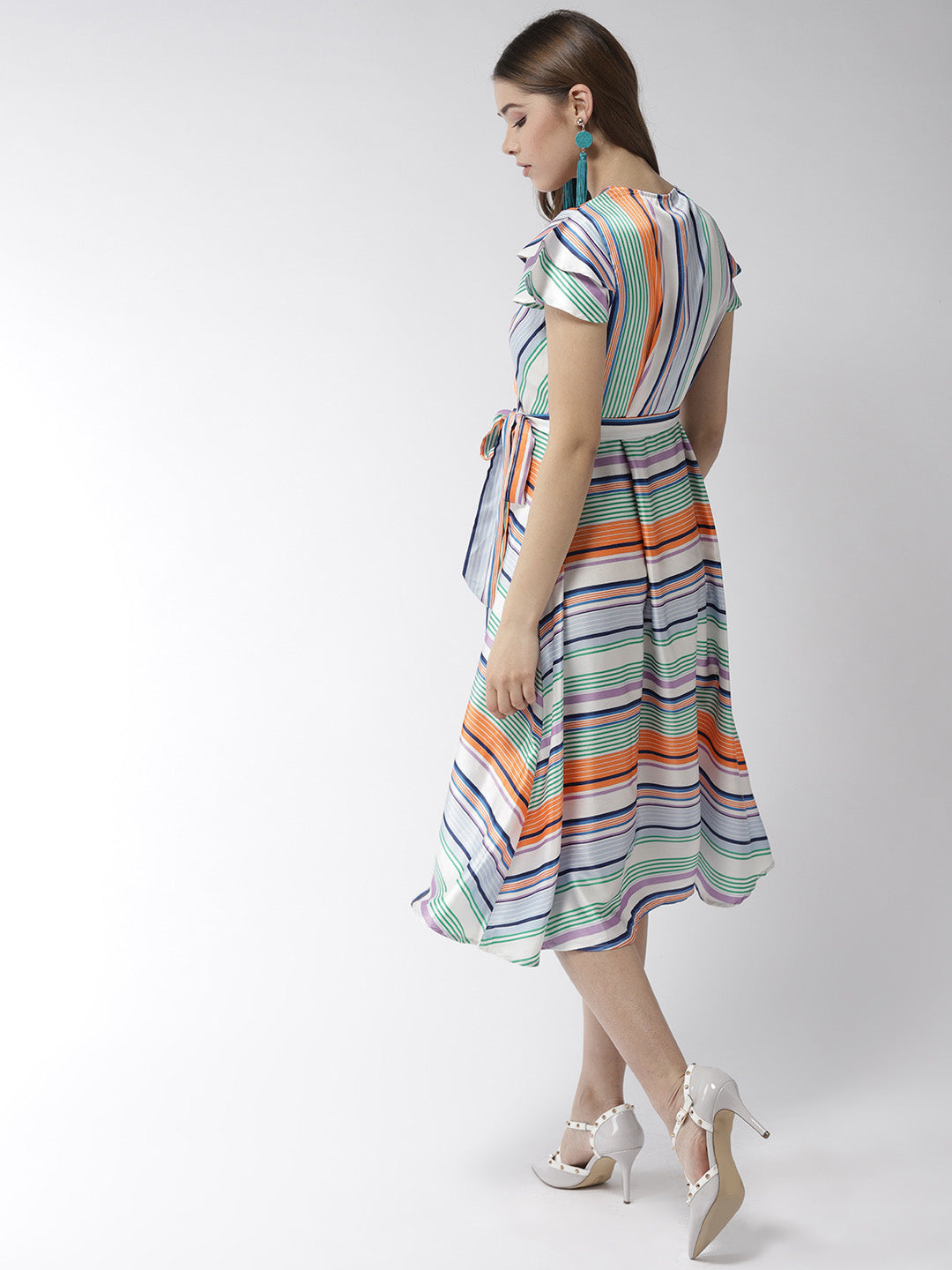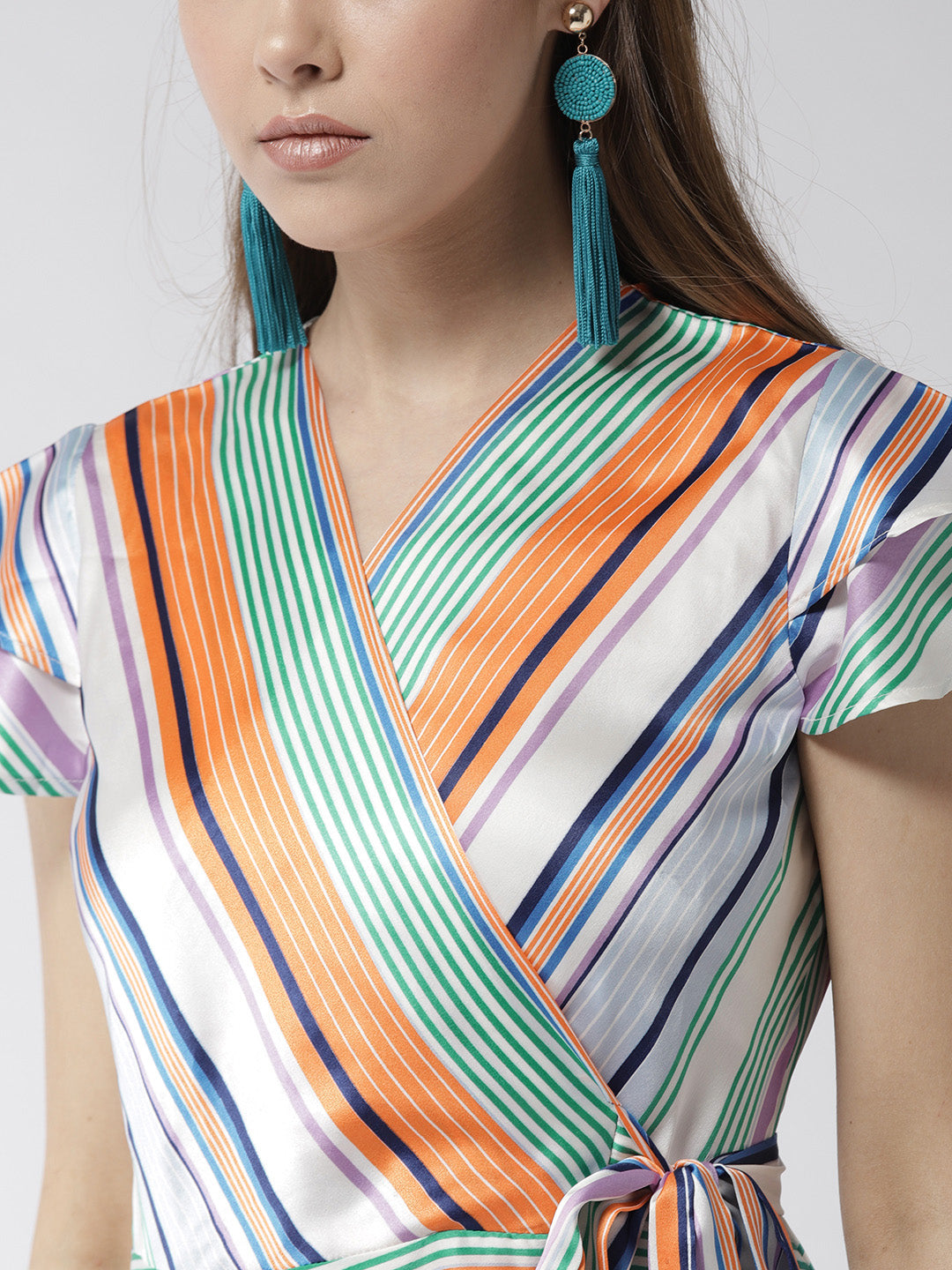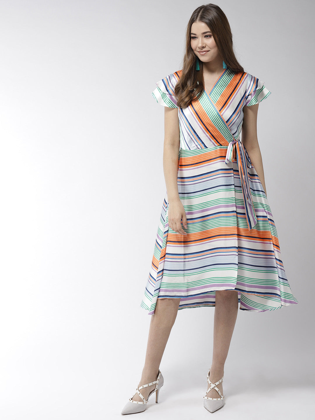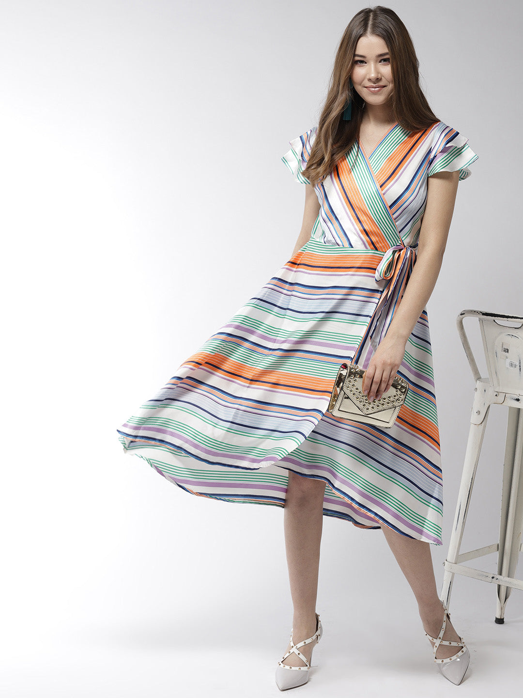 StyleStone Women's Satin Stripe Print Wrap Dress FABRIC: Polyester COLOUR: Multi Wash Care: Machine Wash