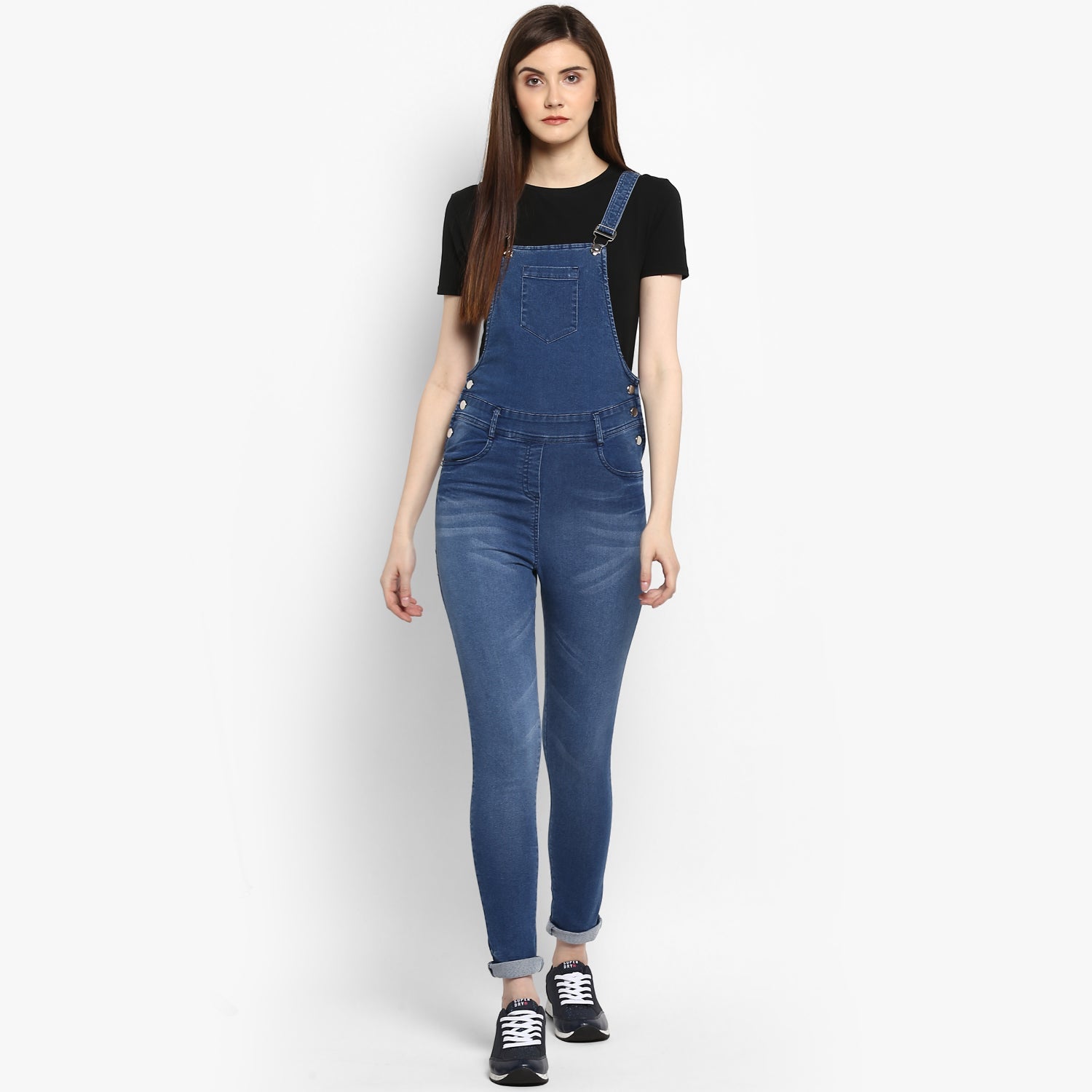 StyleStone Women's Stretchable Denim Washed effect Dungarees(inner not provided) FABRIC: Denim COLOUR: Blue Wash Care: Machine Wash