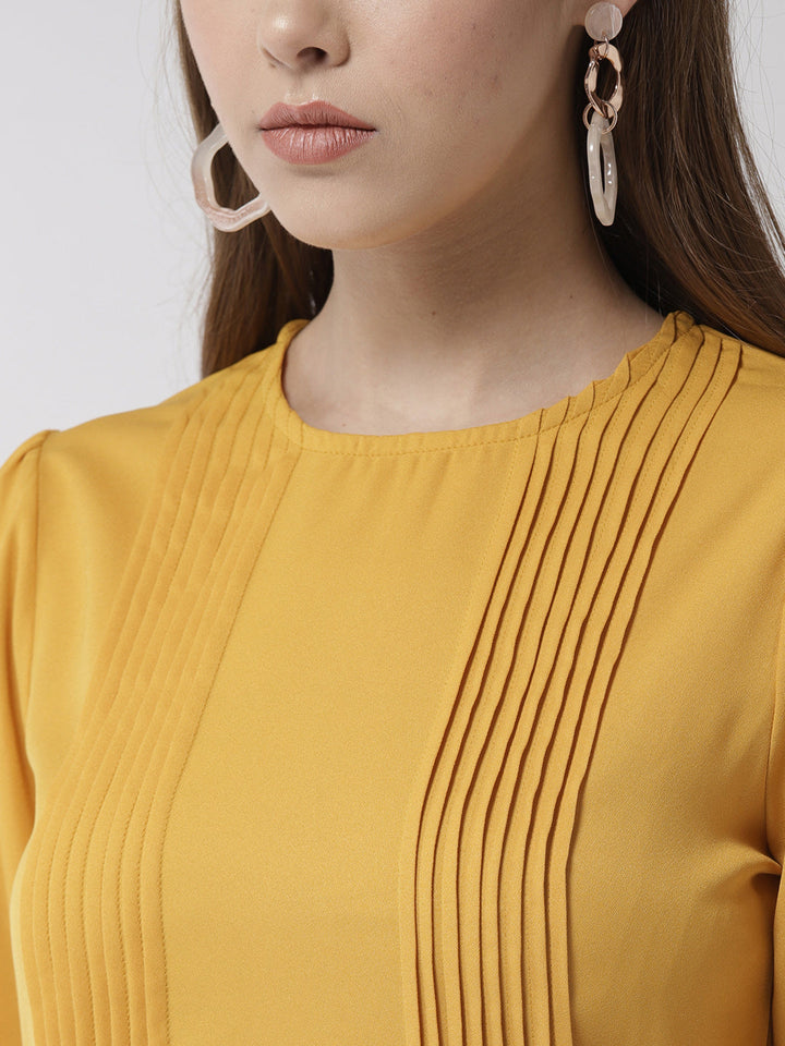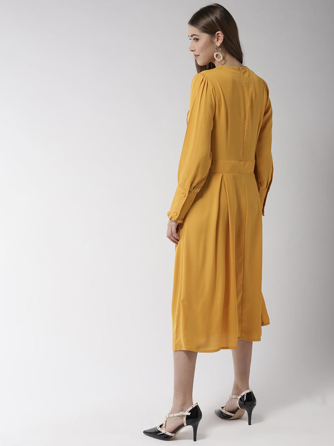 StyleStone Women's Yellow Polyester Moss pintuck and pleated Midi dress Color :Yellow Fabric :Polyester Sleeve: Long Sleeves Pattern: Pintuck Wash Care :Machine Wash