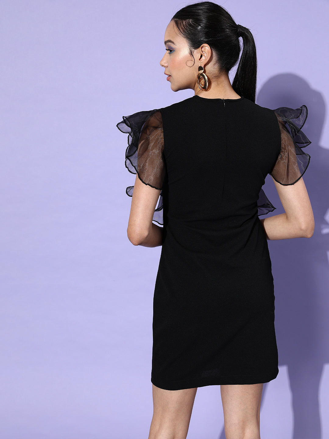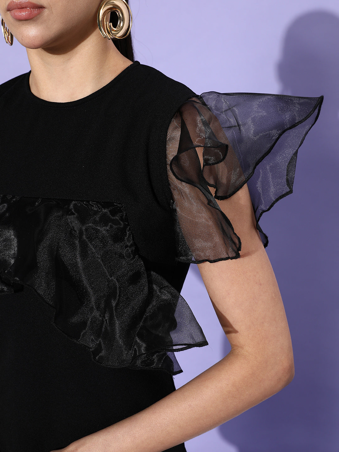 StyleStone Women's Black Dress with Ruffles Color :Black Fabric :Organza & Polyester Lycra Sleeve: Sleeveless Pattern: Ruffled Wash Care :Machine Wash
