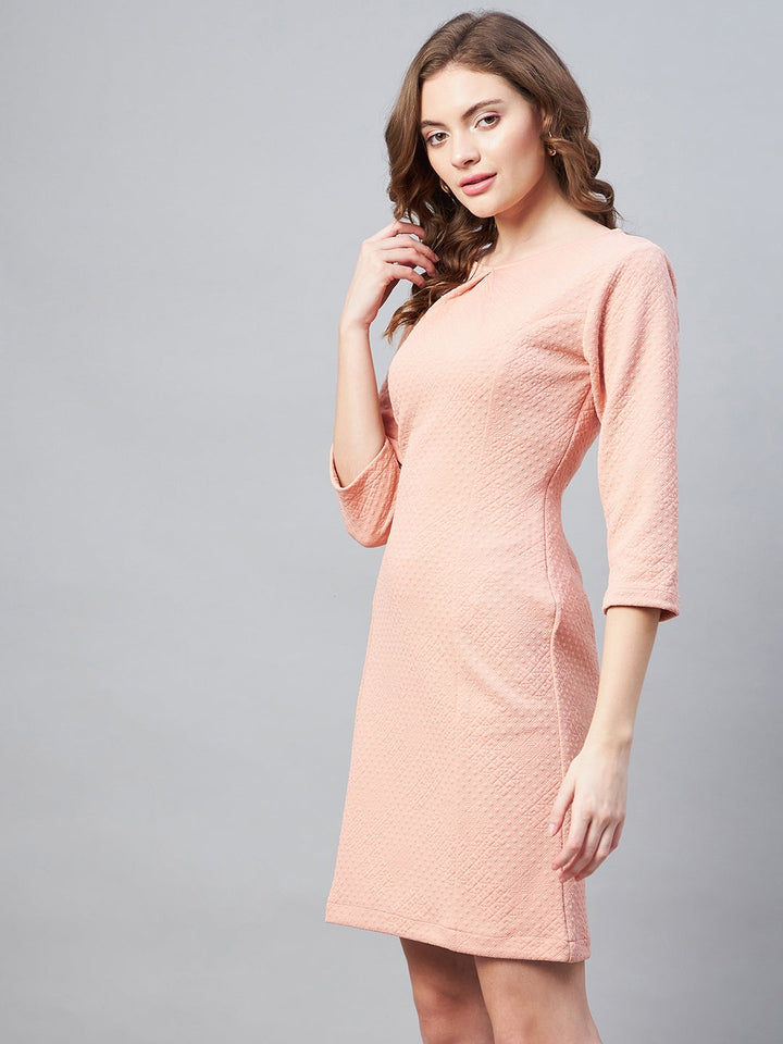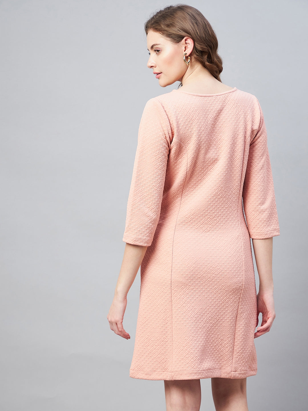 Women's Jacquard Self Design Pink Dress - StyleStone Color :Pink Fabric :Polyester Jacquard Sleeve: 3/4th Sleeves Pattern: Self Design Wash Care :Machine Wash