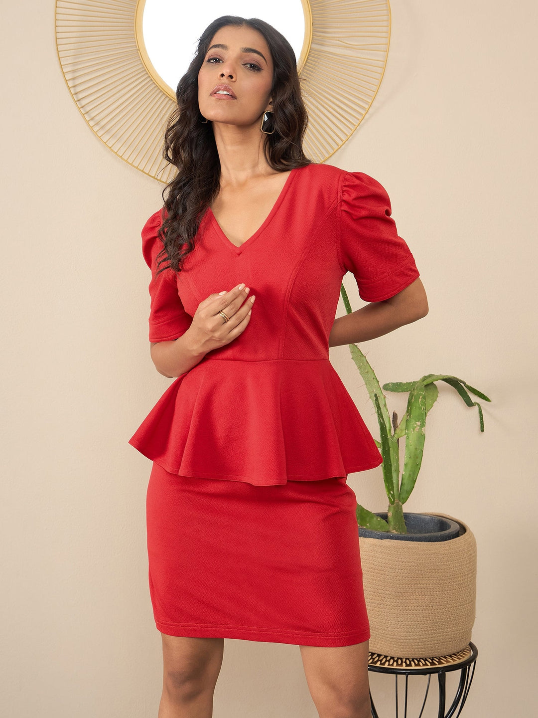 Women's Red Polyester Moss Solid Dress - Stylestone