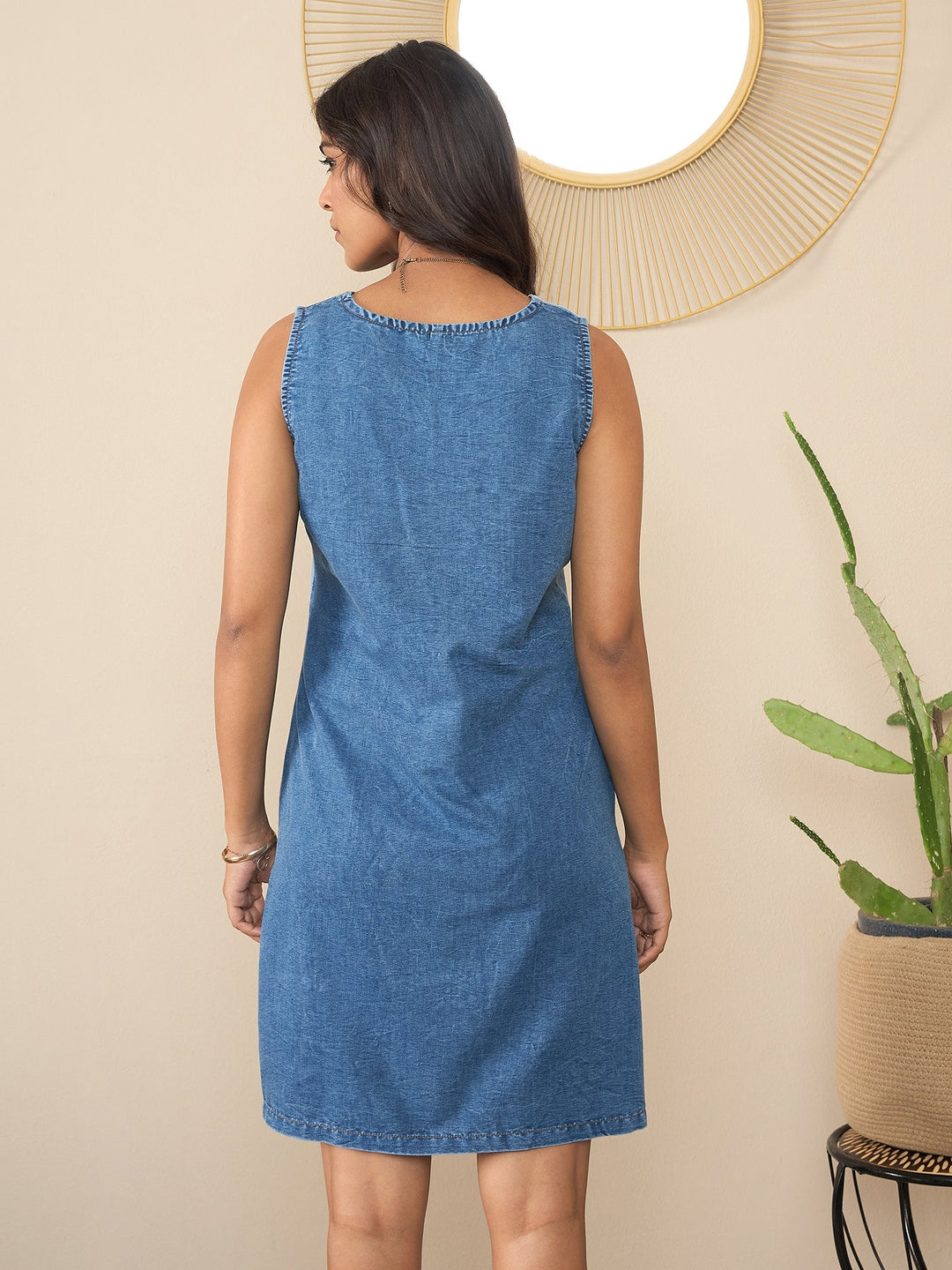 Top Details : Length :35Inch Fabric :Denim Color :Blue Pattern: Patchwork
