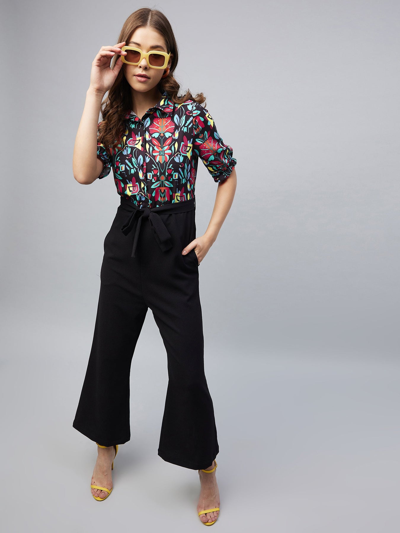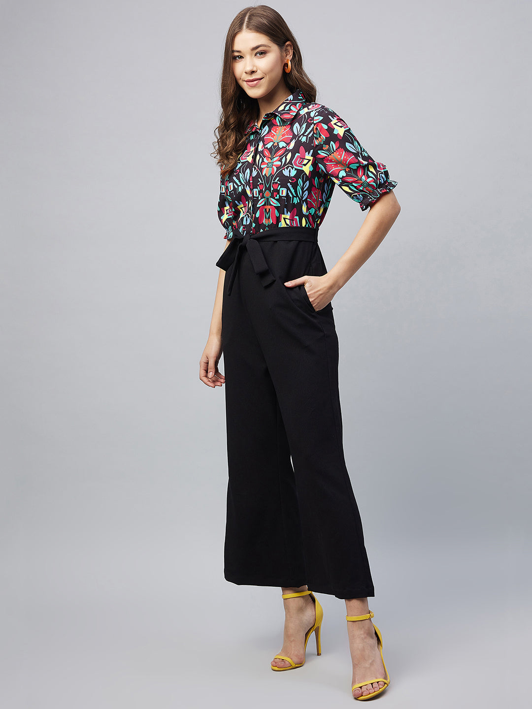 StyleStone Women's Polyester Colour Blocked Jumpsuit Color :Multi Color Fabric :Polyester Sleeve: Short Sleeve Pattern: Floral Wash Care :Machine Wash