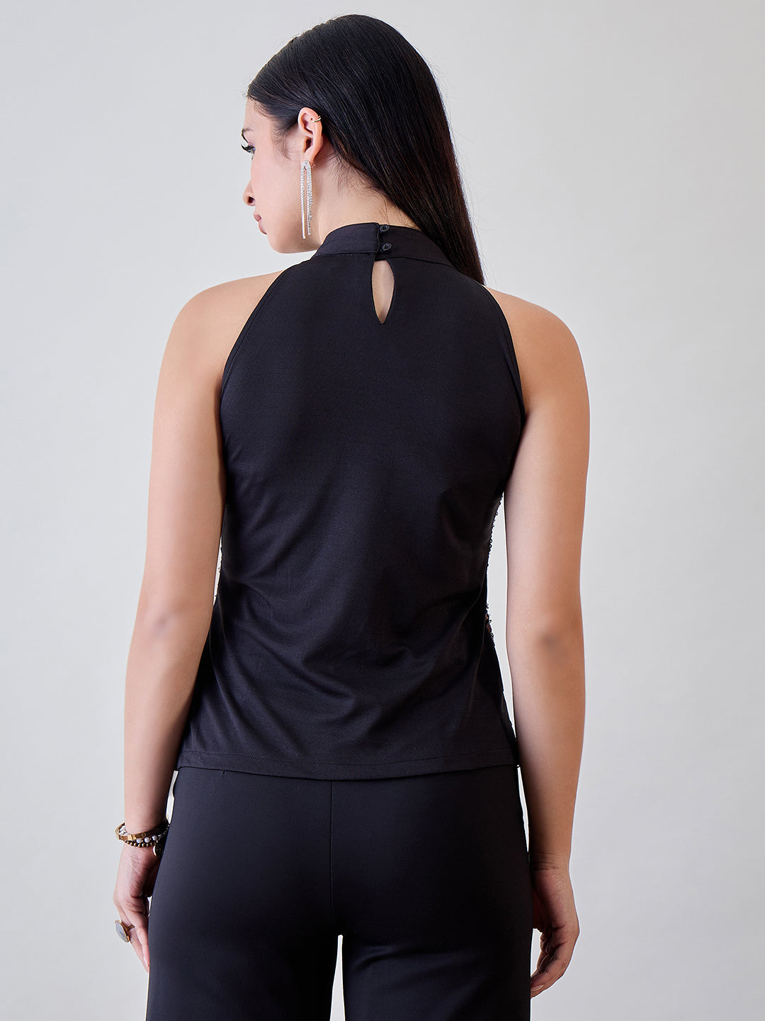 Dazzle In This Sequined Brown Flashy Top, Featuring A High Neck And Exquisite Sequin Detail. Perfect For A Glamorous And Eye-Catching Look.