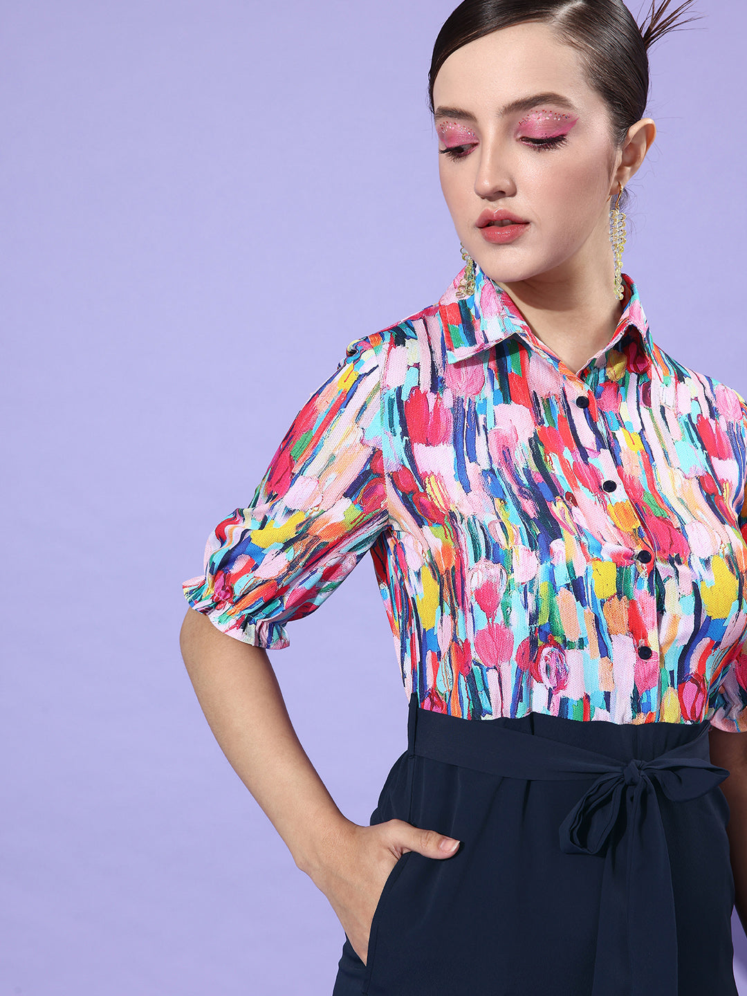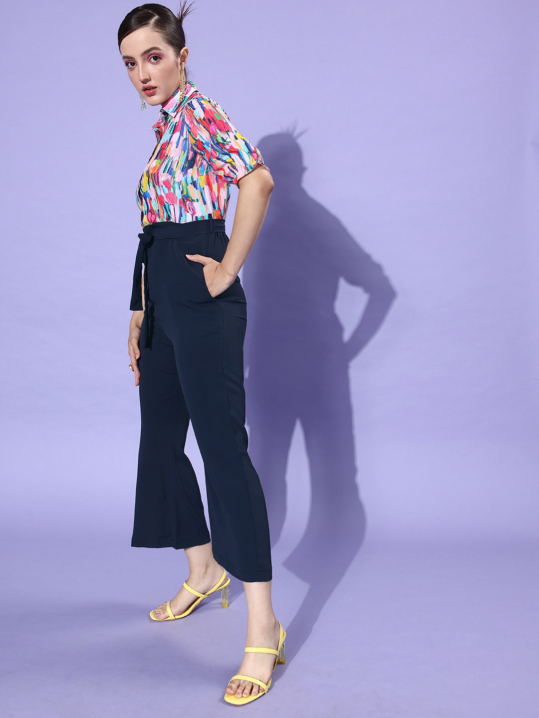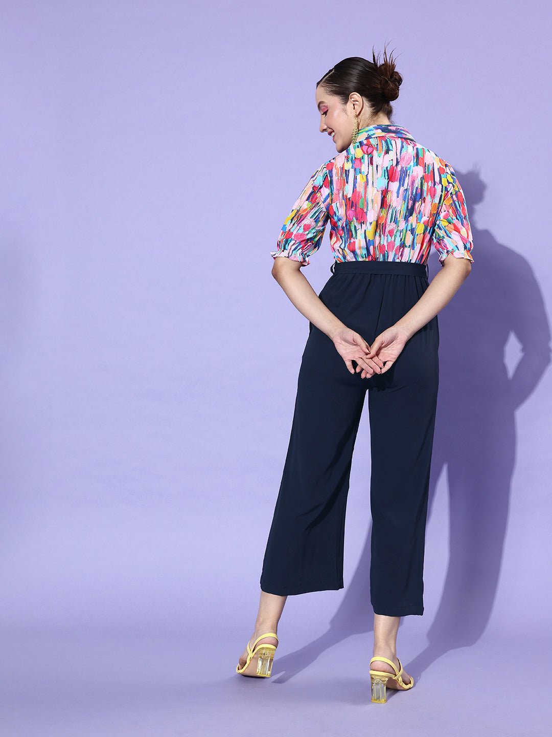 Women's Polyester Multi & Navy Printed Jumpsuit - StyleStone