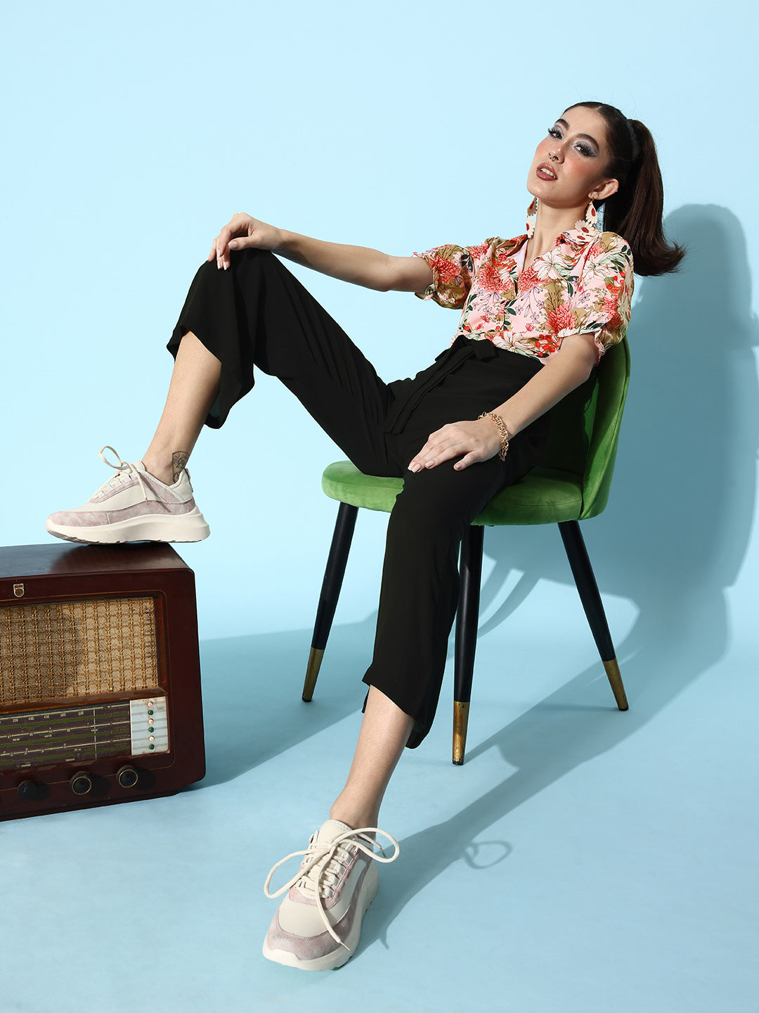 Women's Polyester Multi & Black Printed Jumpsuit - StyleStone