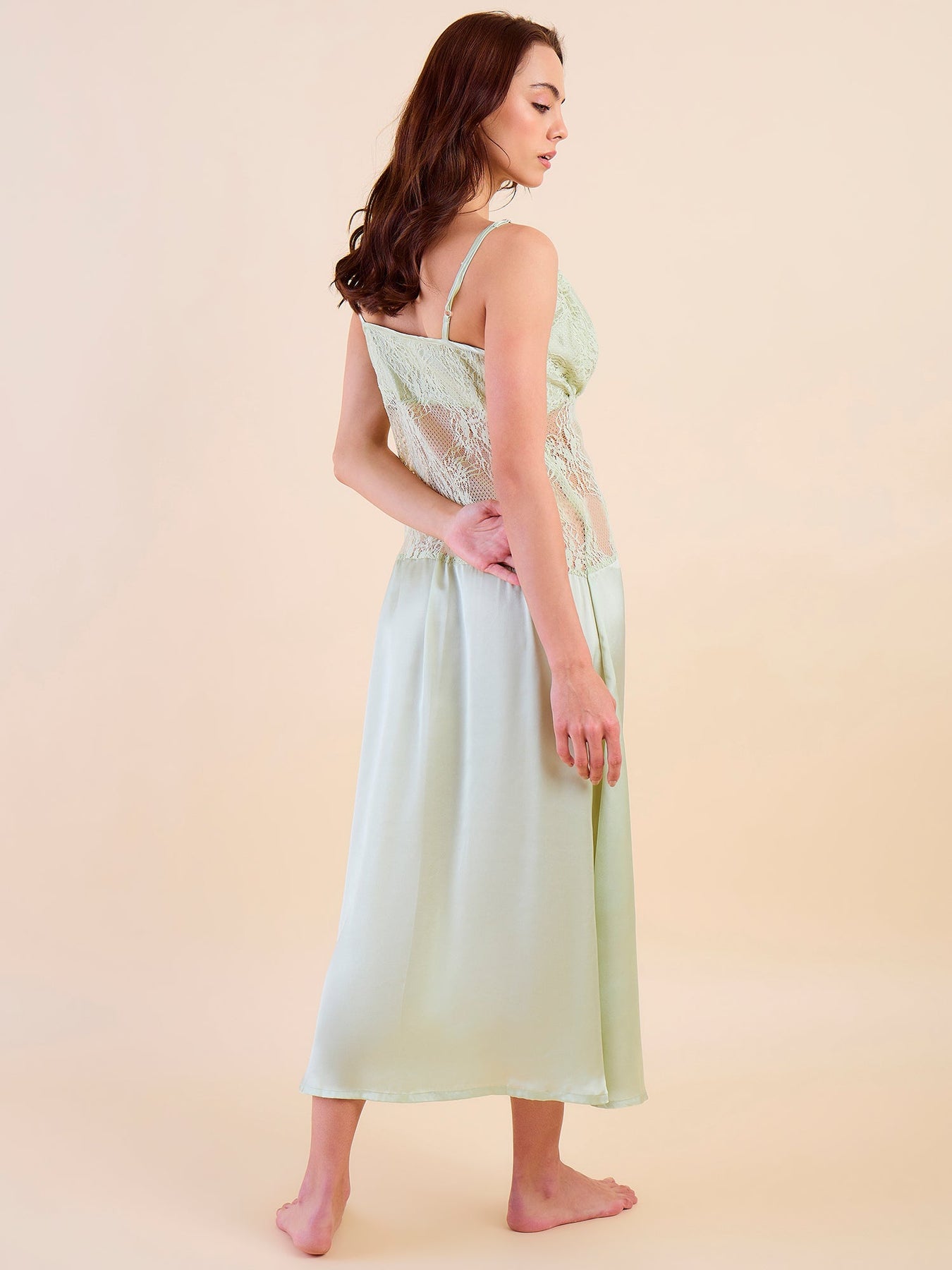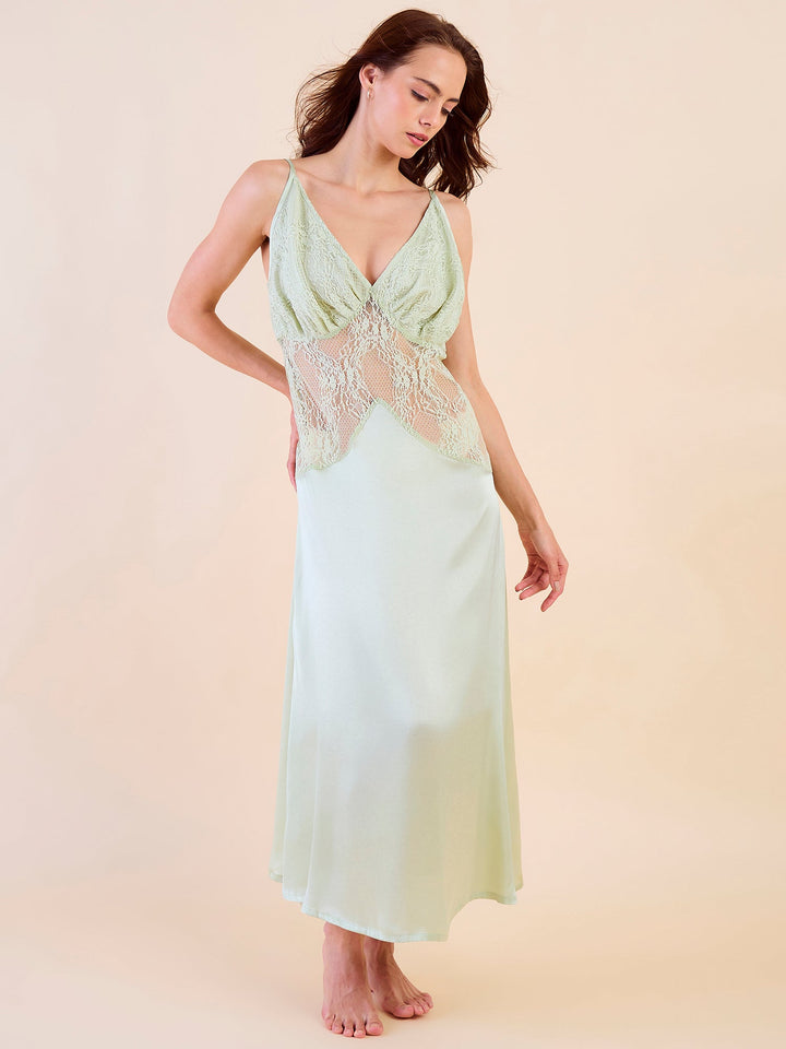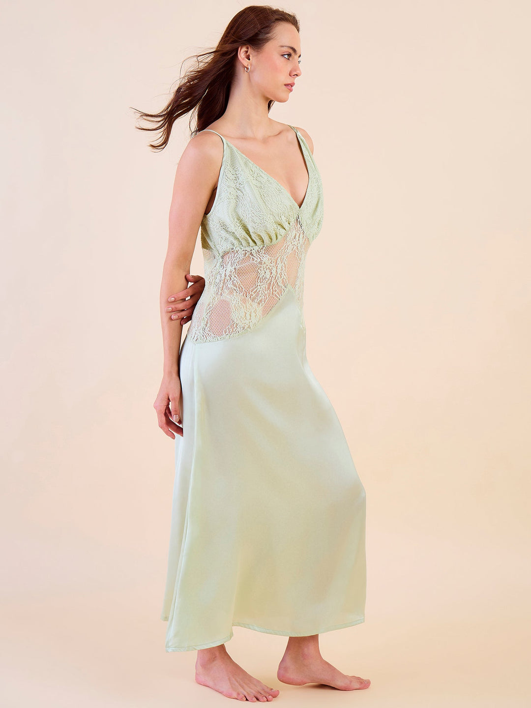 Nightdress Details :Color :Green Fabric :Nylon Neckline :Shoulder Straps Pattern :Self Design Closure :Slip On Fit :Regular