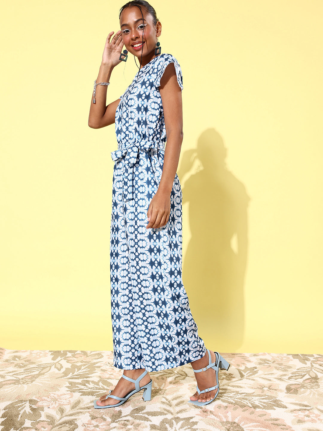 StyleStone Women's Circular Tie & Dye Linen Jumpsuit