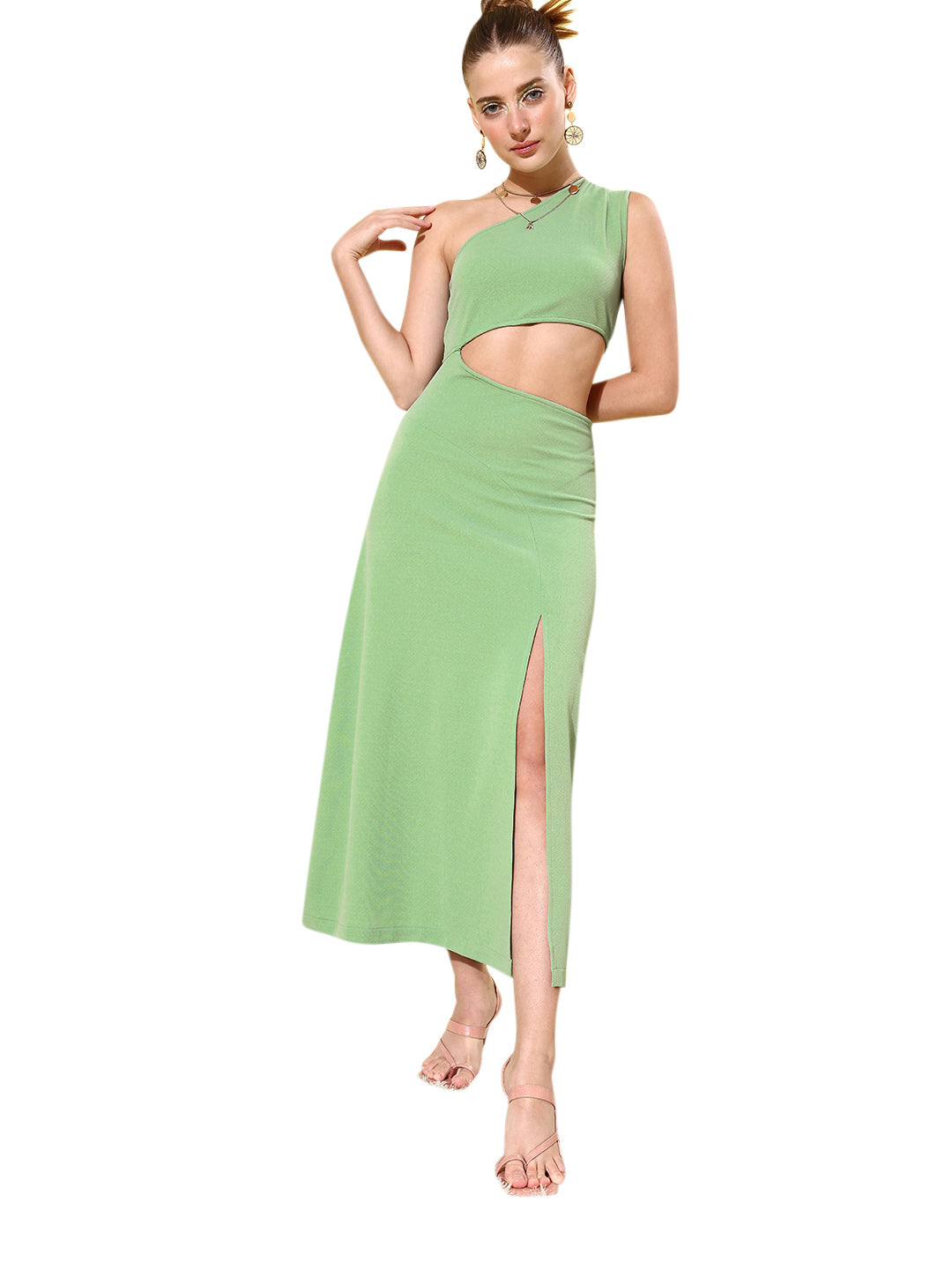 Women's Green Cut Out One Shoulder Maxi Dress - StyleStone
